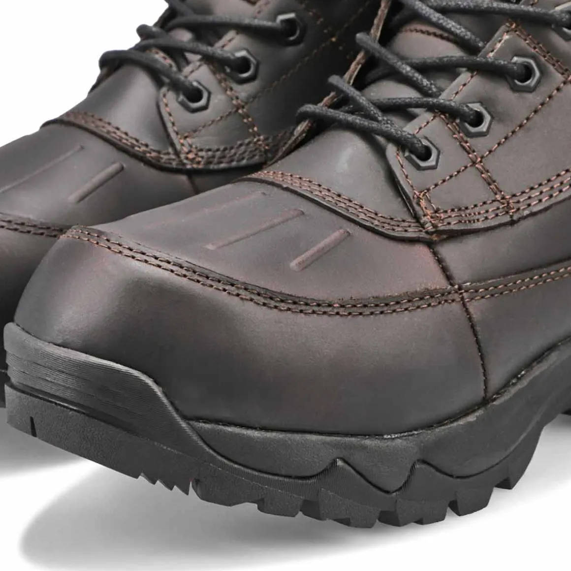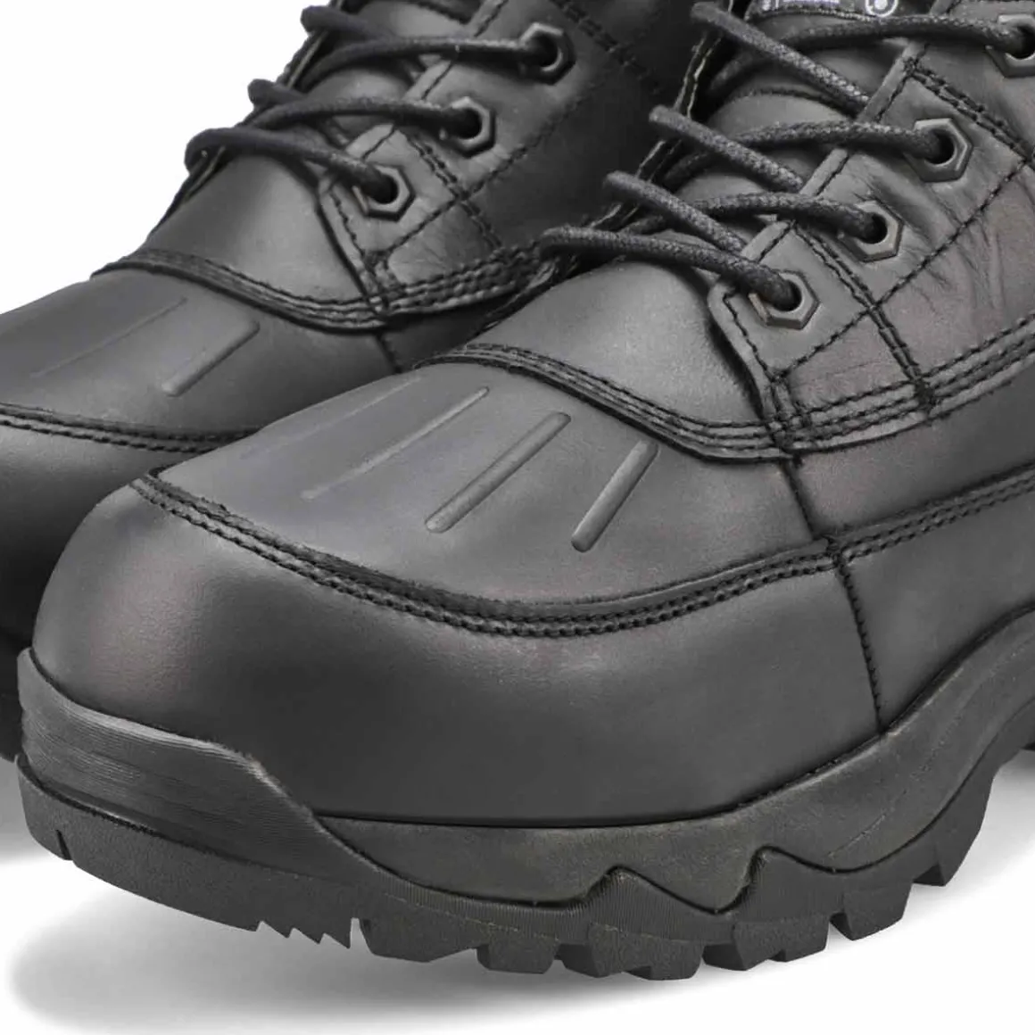 The Wheeler black waterproof winter boot from B&B By SoftMoc will not only keep you warm and dry, it will also keep you looking great. Featuring a leather upper in a waterproof construction design. 400g of Thinsulate lining for added warmth. SM-ICE slip resistant outsole for great durability. Pods built into the sole made from fibreglass technology helps sticks to ice. You will want to make the Wheeler winter boot part of your must-have list for this seaon!