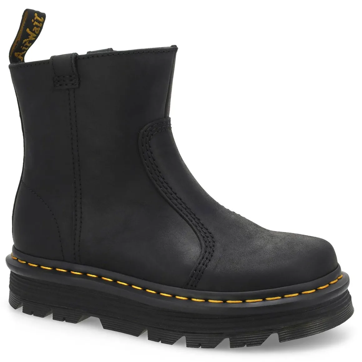 Easy comfort, easy go. The Zebzag Rigger Puul On Boot from Dr. Martens has a silhouette inspired by industrial footwear — rebuilt for easy living and even easier styling. Made with rugged Wyoming leather with dual pull tabs on either side — so you can pull on and head out. The ergonomic Zebzag sole combines lightweight EVA and durable PVC to give your feet an easy ride without limiting your destination.