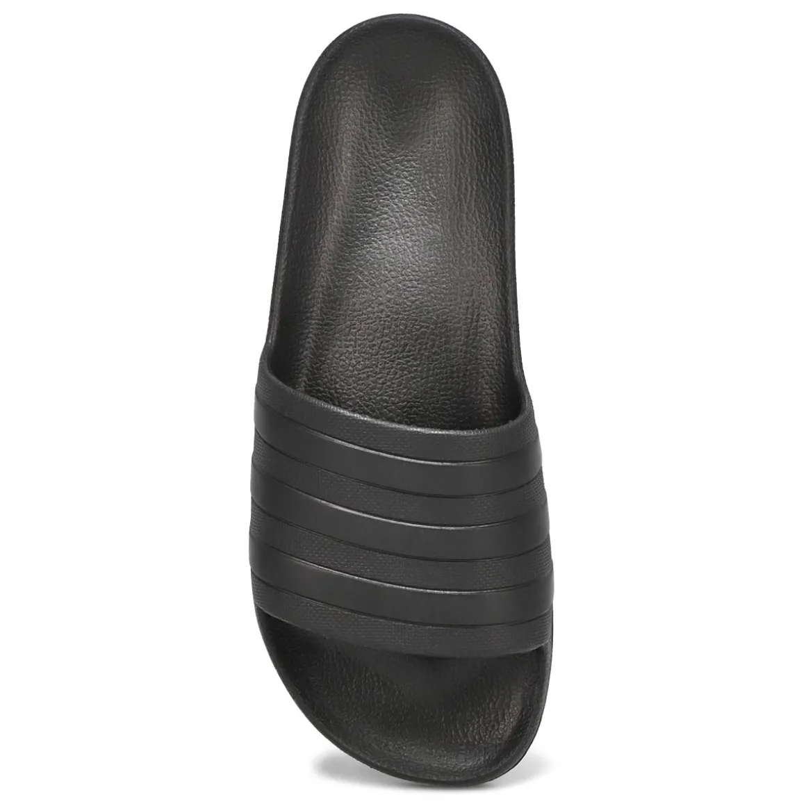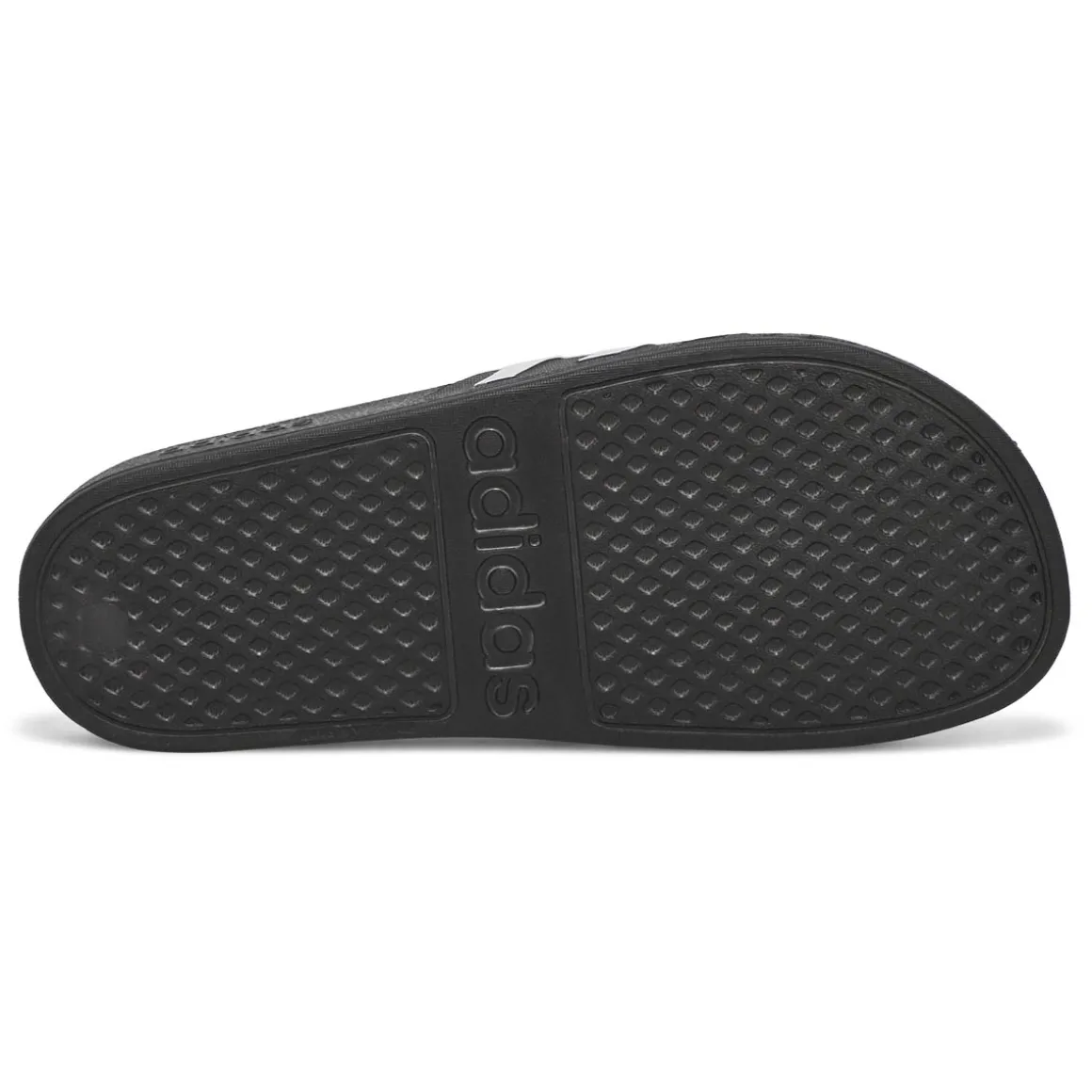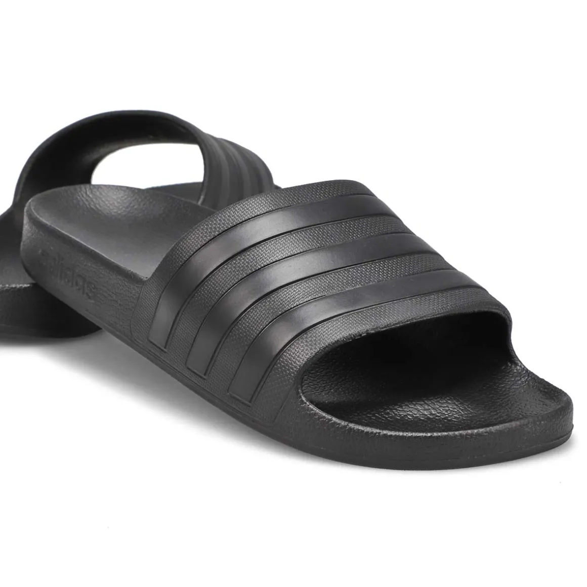 Quick drying Slides with 3-Stripe Style! An iconic style for slick surfaces. These Adilette Aqua slide sandals by Adidas are quick-drying slides flash 3-Stripes across the bandage-style upper. Plush cushioning in the footbed provides the ultimate in comfort in and out of the shower.