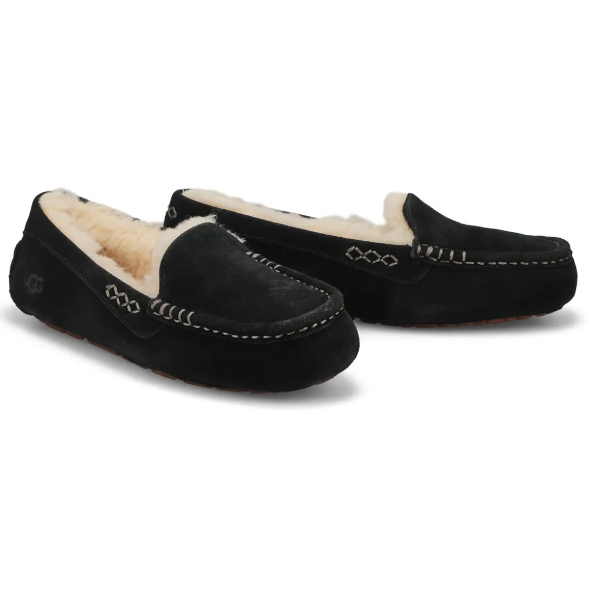 The Ansley chestnut slipper from UGG Australia offers the ultimate in luxury and comfort. Silky suede upper with stitch detail. SoftMocs silhouette with cushy foam insole. Molded gum rubber outsole is perfect for indoor or outdoor use. Moisture wicks away from the foot to maintain a constant body temperature. Slight dye transfer may occur w/darker coloured sheepskin during first few wears.