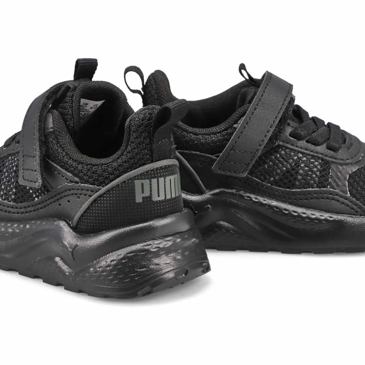 The Anzarun 2.0 AC+ black/ grey sneaker from Puma isn’t your typical shoe. For your little one, who needs a little extra support and comfort, this trainer features a breathable mesh upper, soft cushioning in the footbed and a grippy outsole for durable play. SoftFoam+: PUMA’s comfort sockliner for instant step-in and long-lasting comfort that provides soft cushioning every step of your day. Easy slip on with alternative lace and hook and loop strap closure.