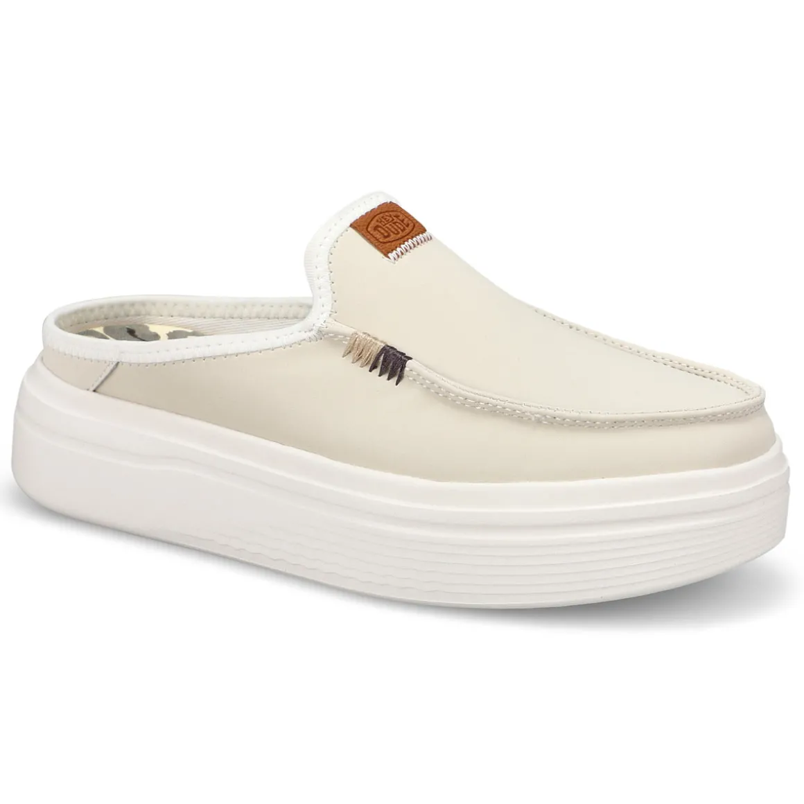 Step into elevated comfort with Austin Lift tan platform shoe from HEYDUDE. Inspired by trendsetters like Sydney Sweeney, these slip-ons are perfect for that bold, stylish look your seeking this season. Featuring a soft suede uppers with a moc-toe stitch, cushioned footbed for comfort, and raised back heel edge keeps your foot feeling secure for a snug fit.