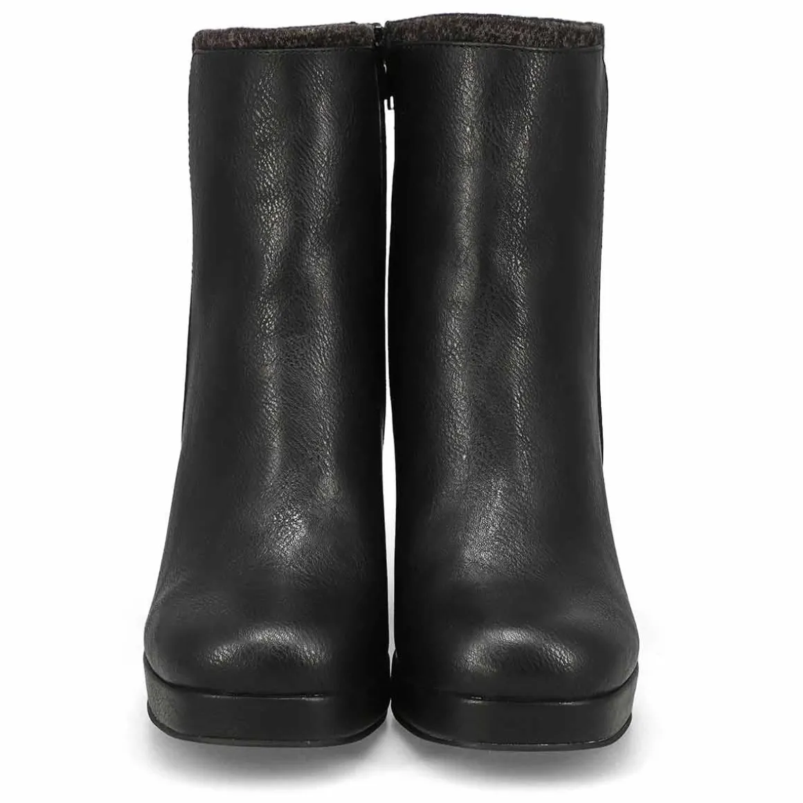 Pull off a luxurious look in the Bailey Platform black dress boot from SoftMoc. The appeal of these mid-calf pant boots crafted with faux leather upper, smooth textile lining and a lightly cushioned footbed. Inside zipper closure offers a secure fit. Textile midsole and rubber outsole provide the needed support and grip to keep you going.