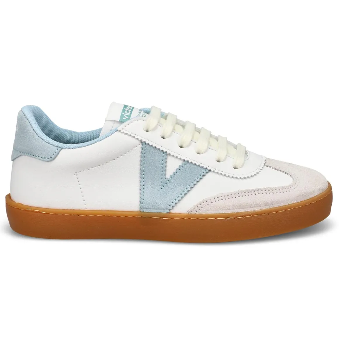 Made in Spain in high quality soft leather. The Berlin Cycle Toe sneaker from Victoria carries the distinction of a silver medal in the LWG (Leather Working Group) certification, which guarantees a responsible tanning process, with an efficient use of water, energy and sustainable waste management. Coloured details on the V on the side and on the back piece, and split leather toe. Their lightly toasted sole is made with vegetable oils rather than mineral oils, thus reducing the environmental impact. They also feature a more ergonomic insole, made from recycled materials, providing superior comfort with every step.