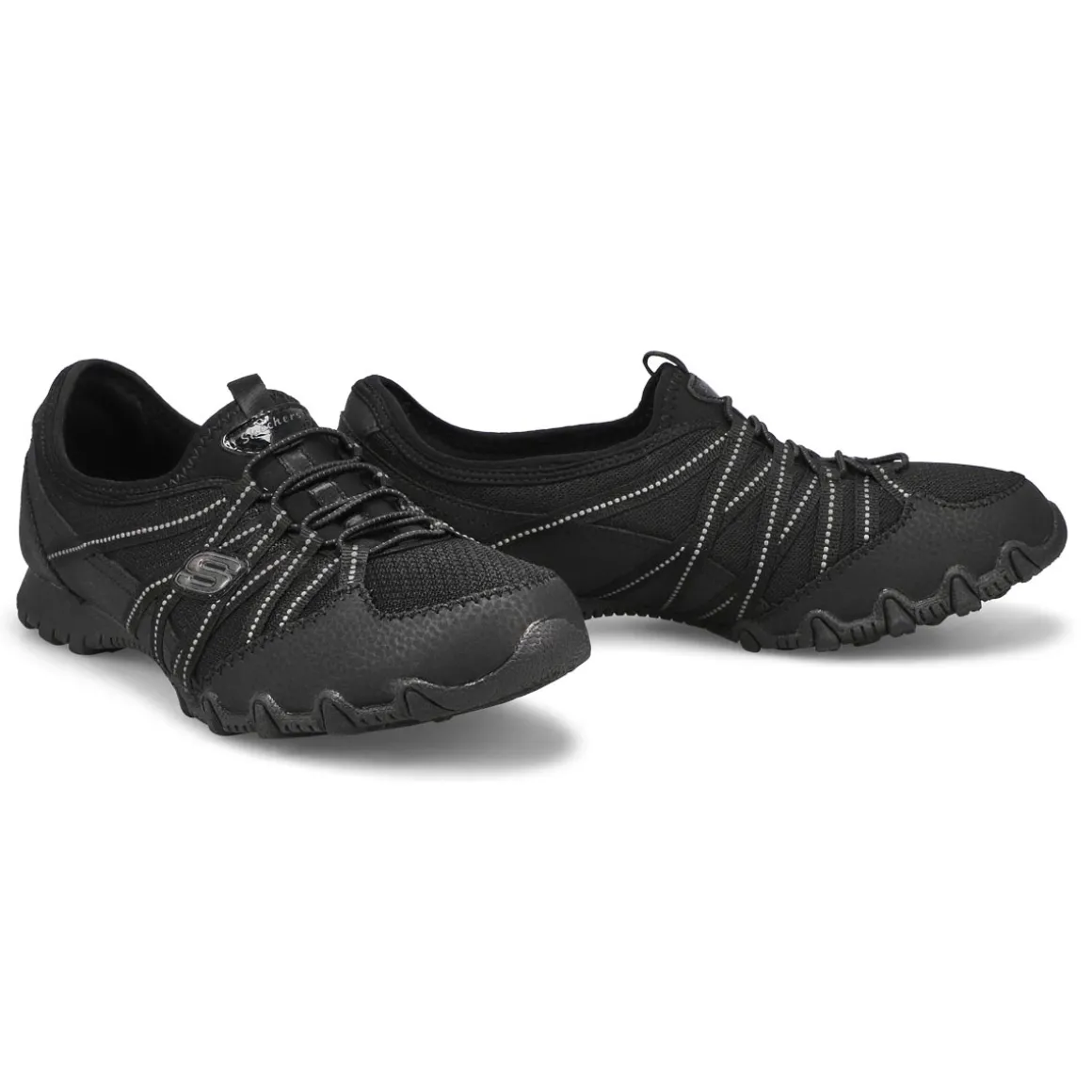 Add a little lite comfort to your look with the Bikers Lite black sneaker by Skechers. Featuring a soft fabric upper with stretch laces and a cushioned Skechers Memory Foam comfort insole. These are super convenient, machine washable casual shoes perfect for walking! Smooth lining with a padded insole with bungee lace front for easy on and off.