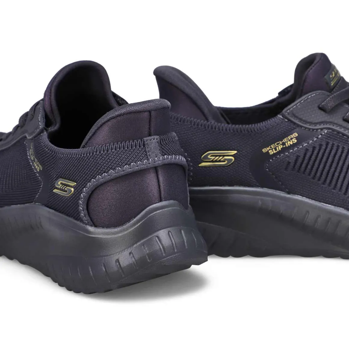 Step into athletic style and comfort wearing the Hands Free Slip-Ins Bobs Sport Squad 4 blue/ multi sneaker from Skechers. Designed with Skechers’ Exclusive Heel Pillow that holds your foot securely in place. This sporty style features a mesh and synthetic upper with stretch laces and a cushioned Skechers Memory Foam insole. Wide Width.