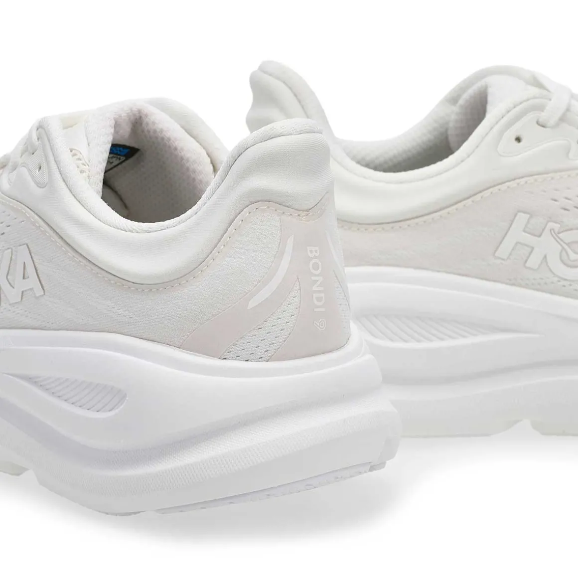 One of the hardest working shoes in the Hoka lineup, the Bondi 9 delivers peak plushness for everyday miles. Overhauled from top to bottom, we’ve increased the stack height and added a new premium foam midsole to deliver that soft, resilient ride that’s become synonymous with the Bondi. Elevated with a 3D molded collar and structured knit upper with zonal breathability, this ultra-cushioned cult favorite has been finished with Durabrasion rubber to combat high wear zones.