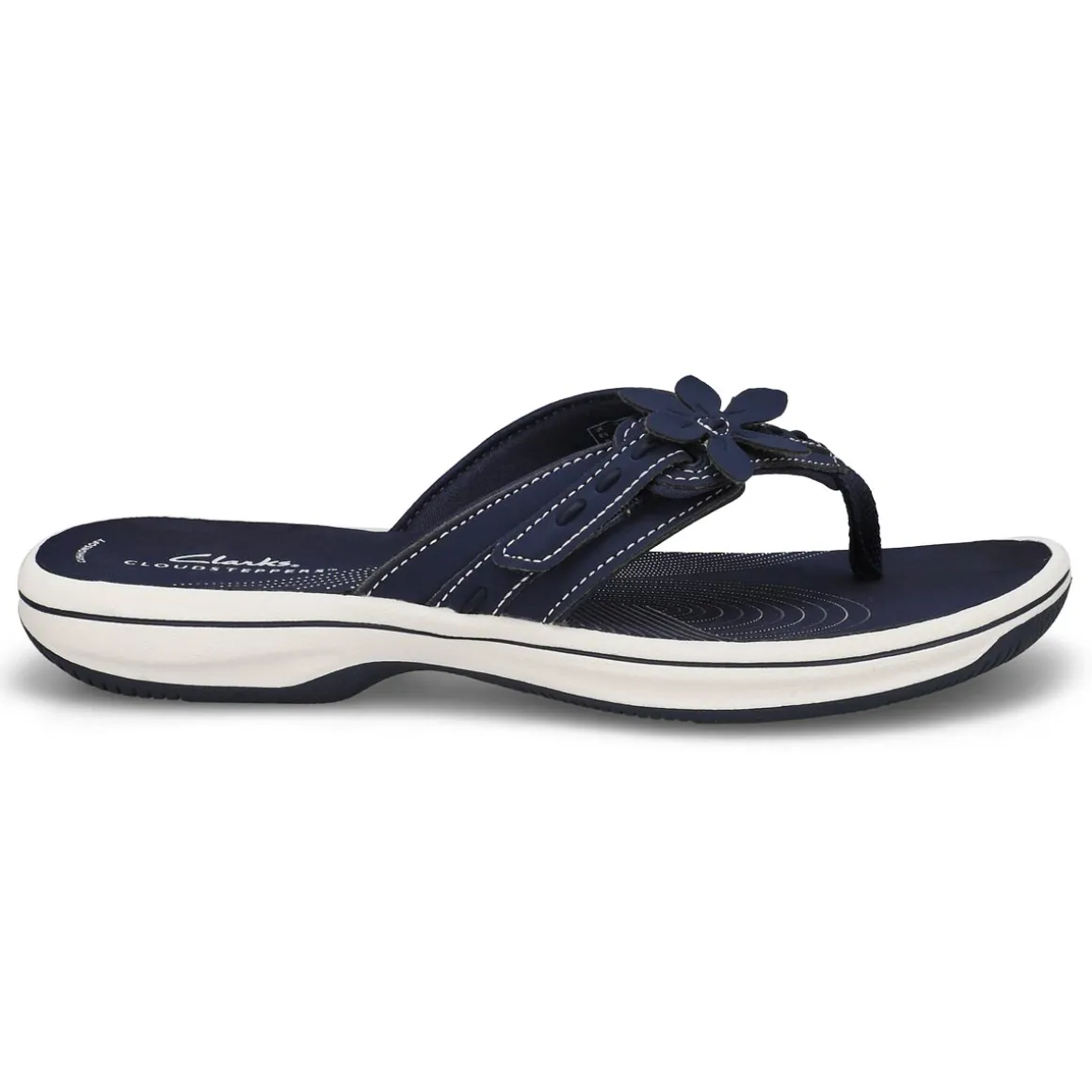 Topped with a pretty flower detail, the Breeze Opal white thong flip-fllop sandal from Clarks is part of their Cloudsteppers collection, so you know that total underfoot comfort is a sure thing. It’s crafted with soft synthetic uppers for a skin-gentle feel, while grippy soles make for confident support and easy-breezy steps.