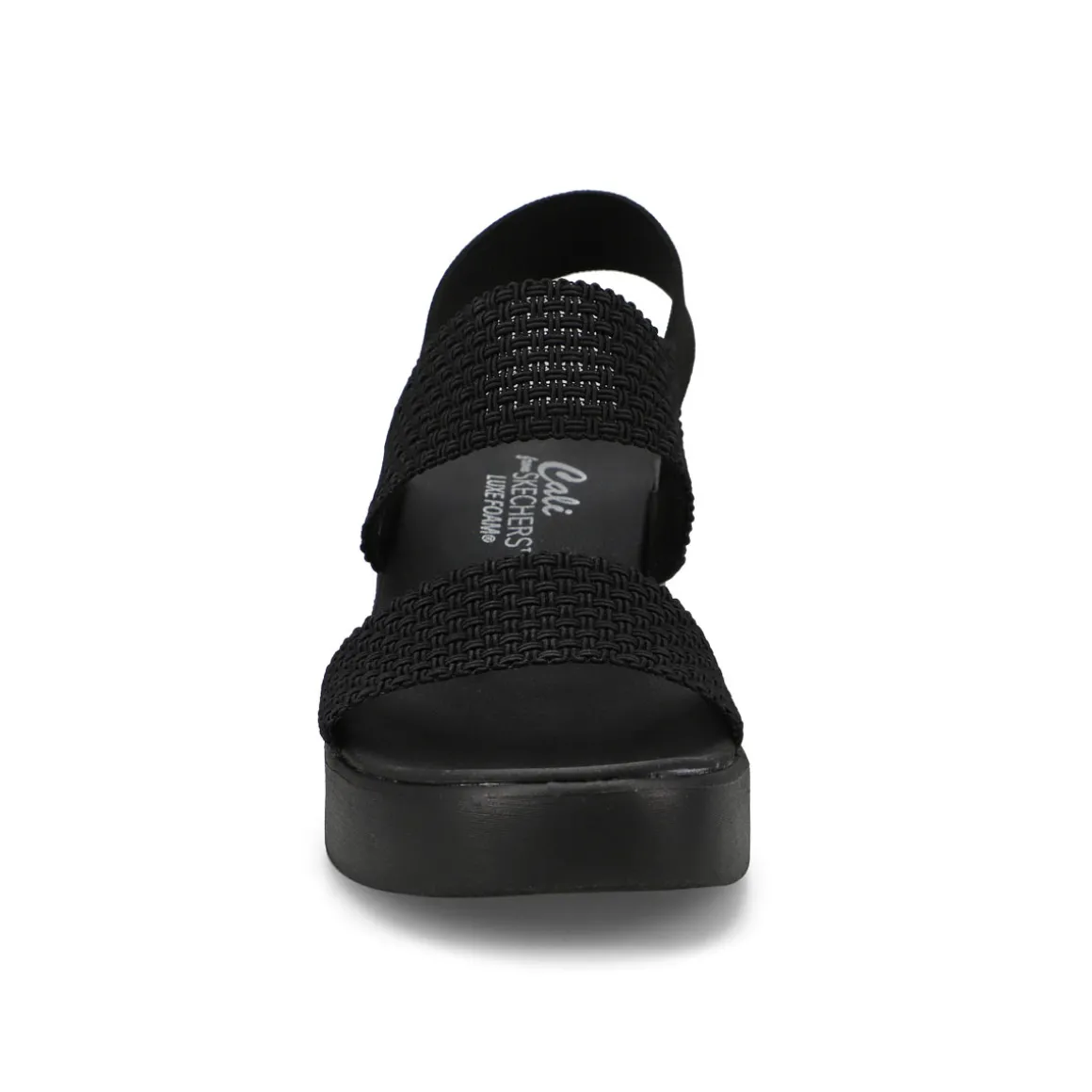 Heighten your look stylish comfort in the Cali Day off white Casual Sandal from Skechers. This lightweight sandal features a stretchy knitted double band strap upper with a sling back and a cushioned Luxe Foam footbed. Match warm-weather style with toe-to-toe comfort from Skechers contoured well-cushioned Luxe Foam Footbed. 2 1/2-inch heel height.