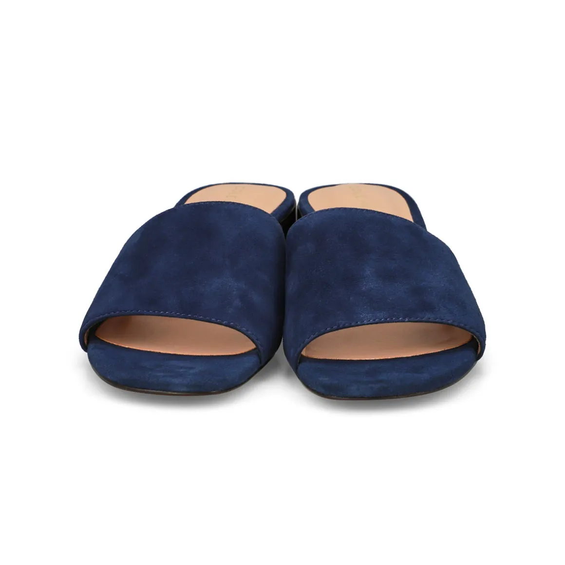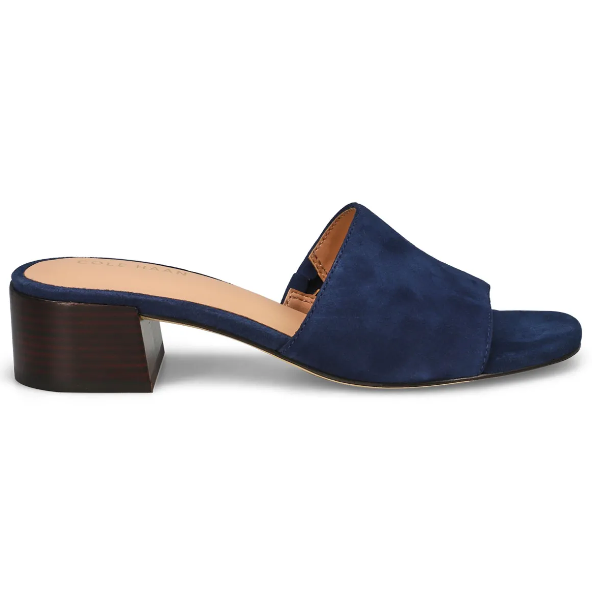 Polish off your summer looks with the Calli navy blazer suede leather dress slide sandal from Cole Haan. Featuring premium suede leather upper and comfortable block heel, this classic style is finished with a cushioned insole and arch support. Perfectly umcomplicated, easy slip-on styling in a stacked block heel. Approx. 1.5 inch block heel height.