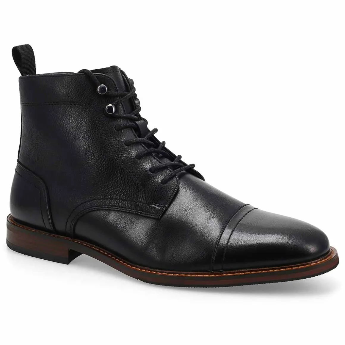 Walk in the Captain leather black lace up boot from Steve Madden to feel and look good all day. Featuring a leather upper. with a breathable textile lining that surrounds the foot in comfort. Lace up styling with a secure fit. Lightly cushioned insole for all day comfort. Durable ruuber outsole 1 inch heel height.