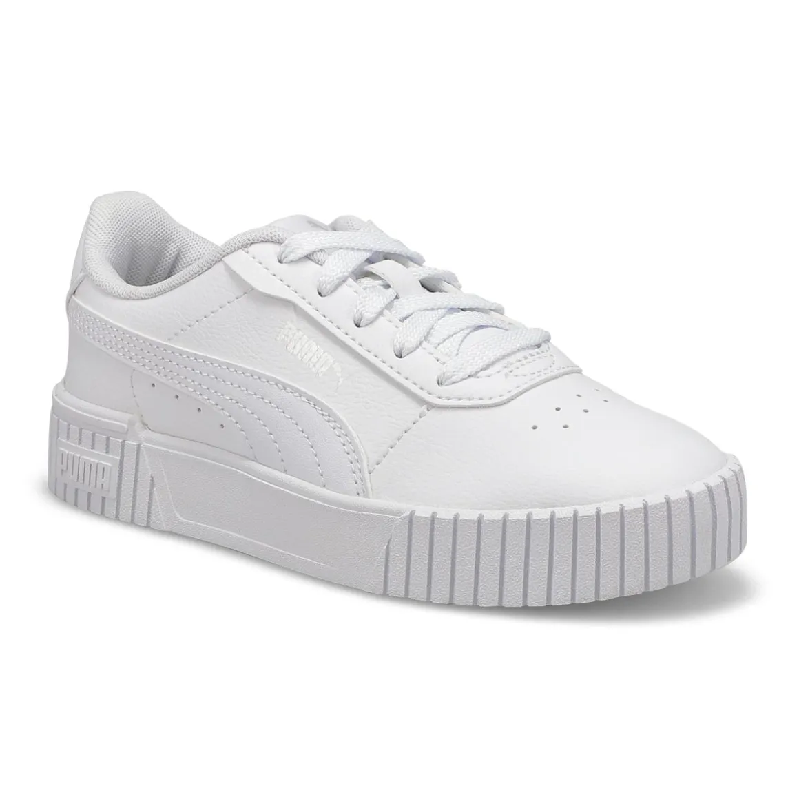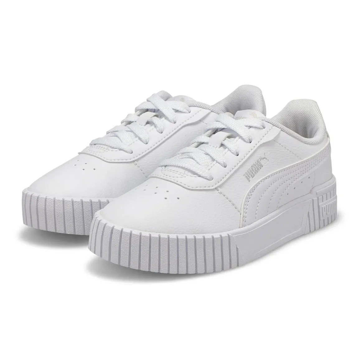 Carina 2.0 PSsneakers by Puma are inspired by styles from the 80s, in a new tennis silhouette interpreted to fit today’s laid-back sneaker look of Californian beach towns. Wider vertical lines as well as a Puma logo on the heel add a young, street look. The synthetic leather upper contains a recycled component and is accented by a perforated vamp and the well-known Puma Formstripe. The SoftFoam+ sockliner provides superior cushioning and optimal comfort for every step of your child’s day.