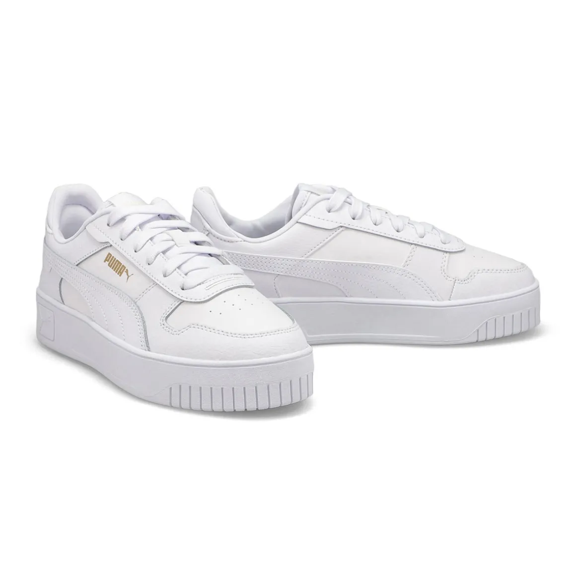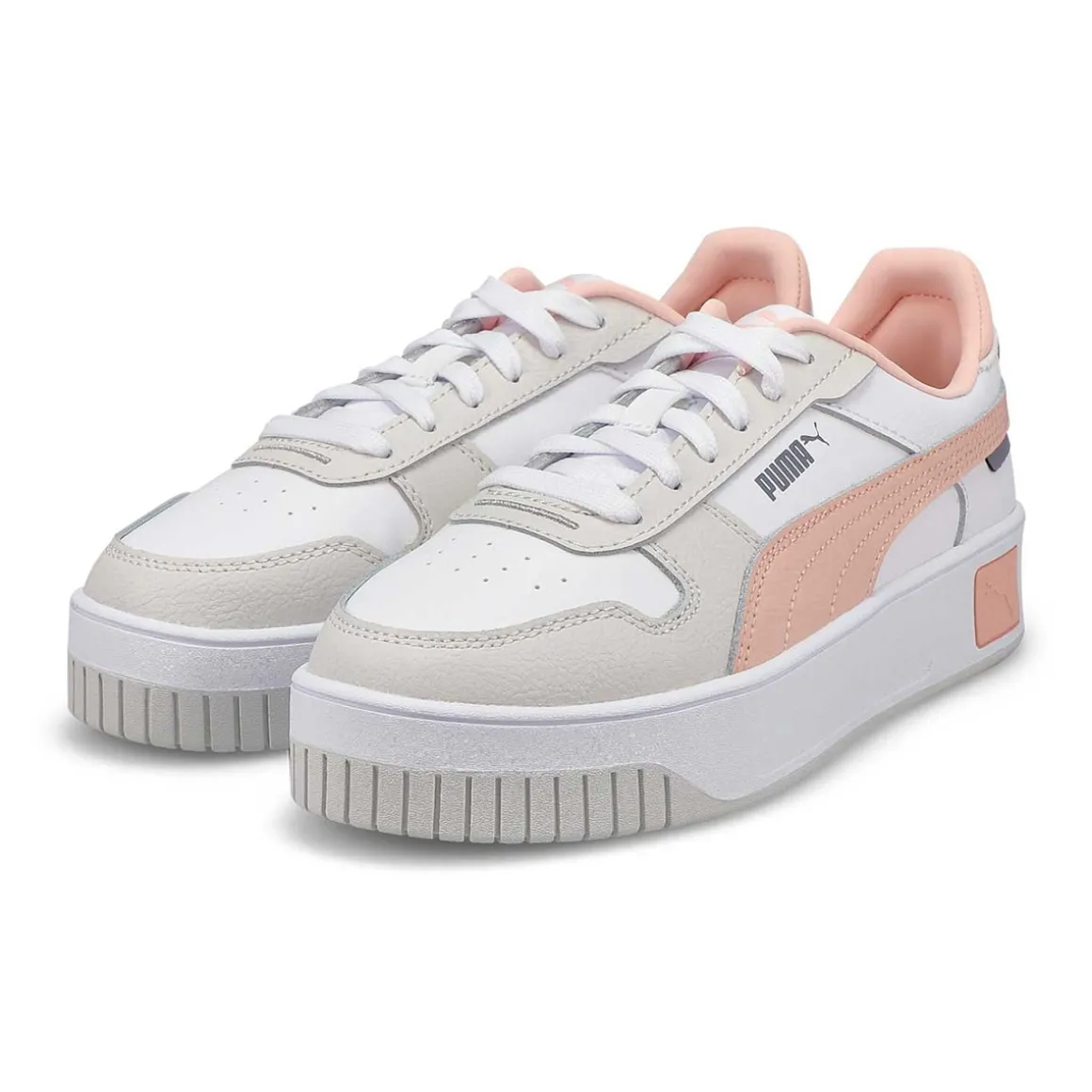The Carina Street Jr white/ rose sneaker from Puma features a streetwear-inspired design and a slightly elevated platform, making them your perfect choice for casual, everyday outfits. Upper of this shoe is made with at least 20% recycled materials as a step toward a better future. SOFTFOAM+: Step-in comfort sockliner designed to provide soft cushioning thanks to its extra thick heel.