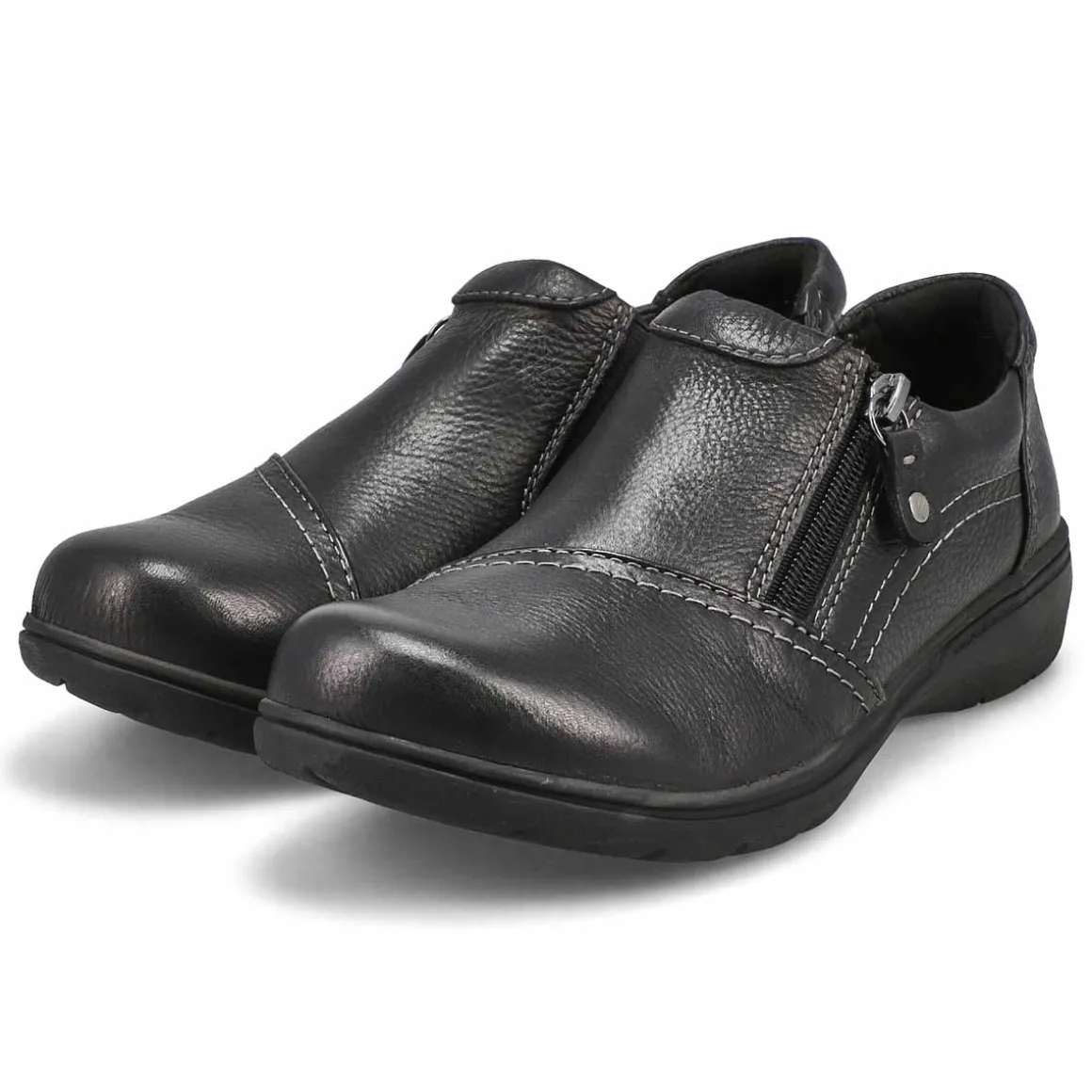 Keeping comfort at its core, Clarks trusty everyday shoe, the Carleigh Ray wide casual shoe that is crafted for back-to-work and busy weekend wear. Durable combination suede and leather uppers in classic black wrap the foot perfectly, while our signature underfoot cushioning and a super-grippy sole keep every step grounded. Wide Width