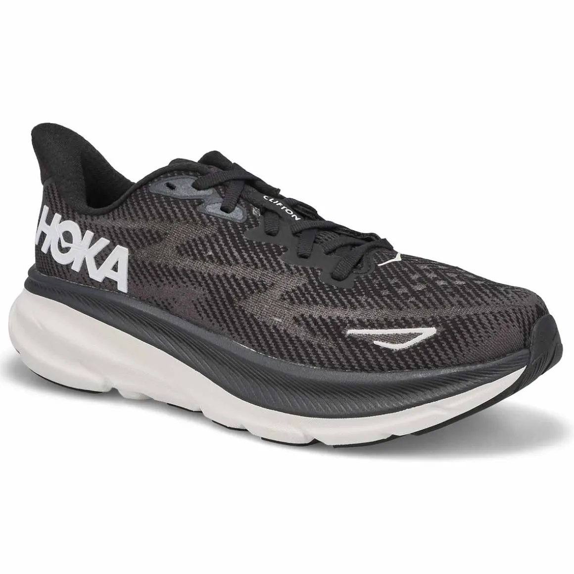 Eliminating weight while adding in stack height, the Clifton 9 black/ white lace up performance Runner from Hoka delivers a revitalized underfoot experience with a responsive new foam and improved outsole design. Removing overlays and hotmelts, the stripped back upper has been consciously crafted with a plusher heel, reflective heel panel, and streamlined tongue with single side medial gusset. Heel-to-toe Drop: 5mm.