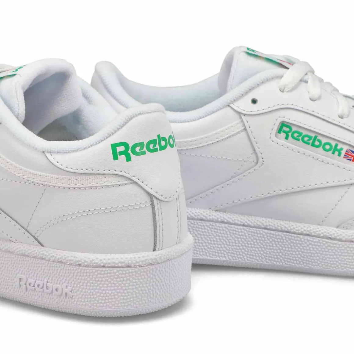 Clean, minimalist design. The Club C 85 white/grey tennis-inspired shoes from Reebok keeps your look sleek and simple. Pops of subtle contrast color adds a chic touch. A Reebok logo window with a Union Jack gives them old-school style. The upper is made of soft, flexible leather. There’s nothing quite like a fresh white sneaker!