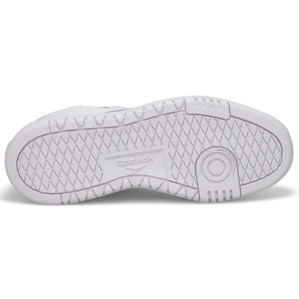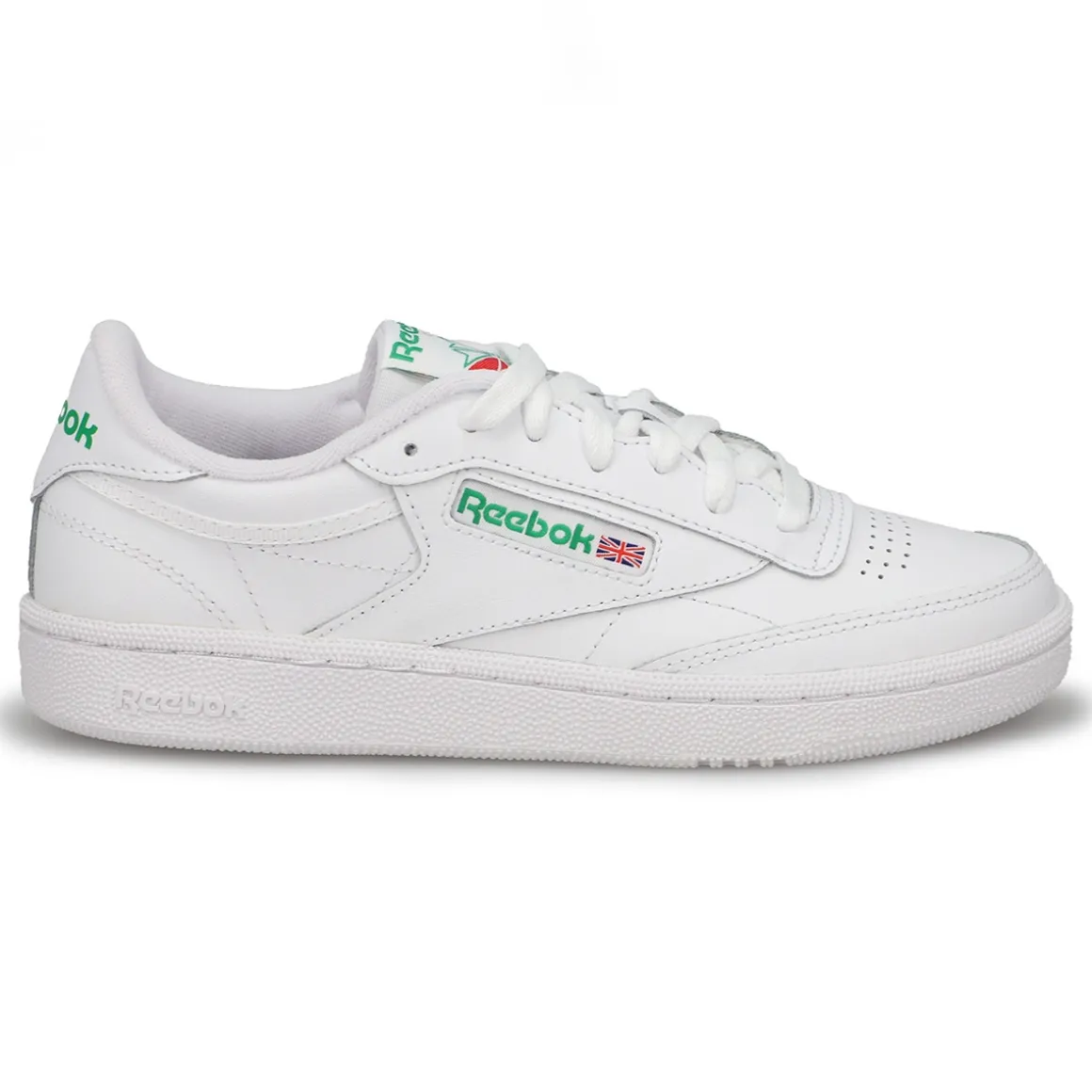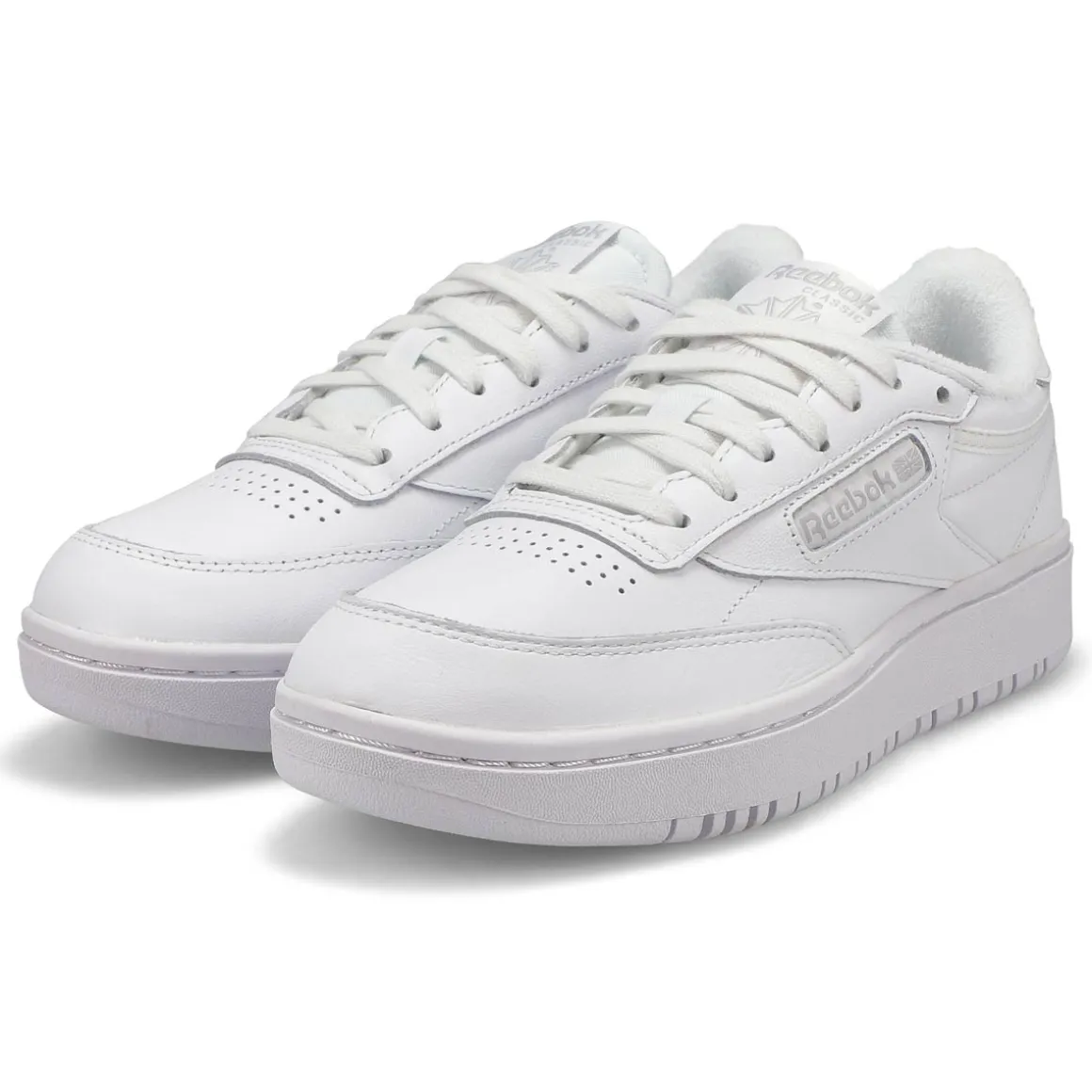 Clean, minimalist design. The Club C Double tennis-inspired shoes from Reebok keeps your look sleek and simple. Pops of subtle contrast color adds a chic touch. A Reebok logo window with a Union Jack gives them old-school style. The upper is made of soft, flexible leather. Stacked midsole for extra height and a chunky profile. There’s nothing quite like a fresh white sneaker!