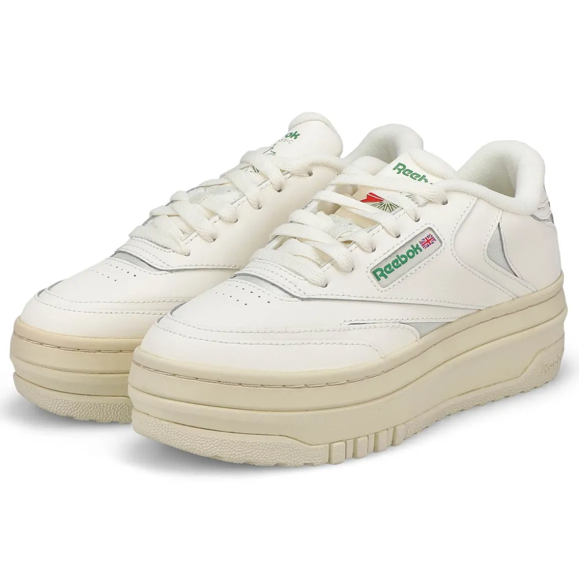 Being extra is a good thing. These Reebok Club C Extra chalk/chalk/glengreen shoes prove it. An exaggerated platform midsole with a geometric design gives you an amplified look. Don’t miss the outsole which has a 3D tennis racket effect. Subtle hits of iconic color on the leather upper seal the deal.