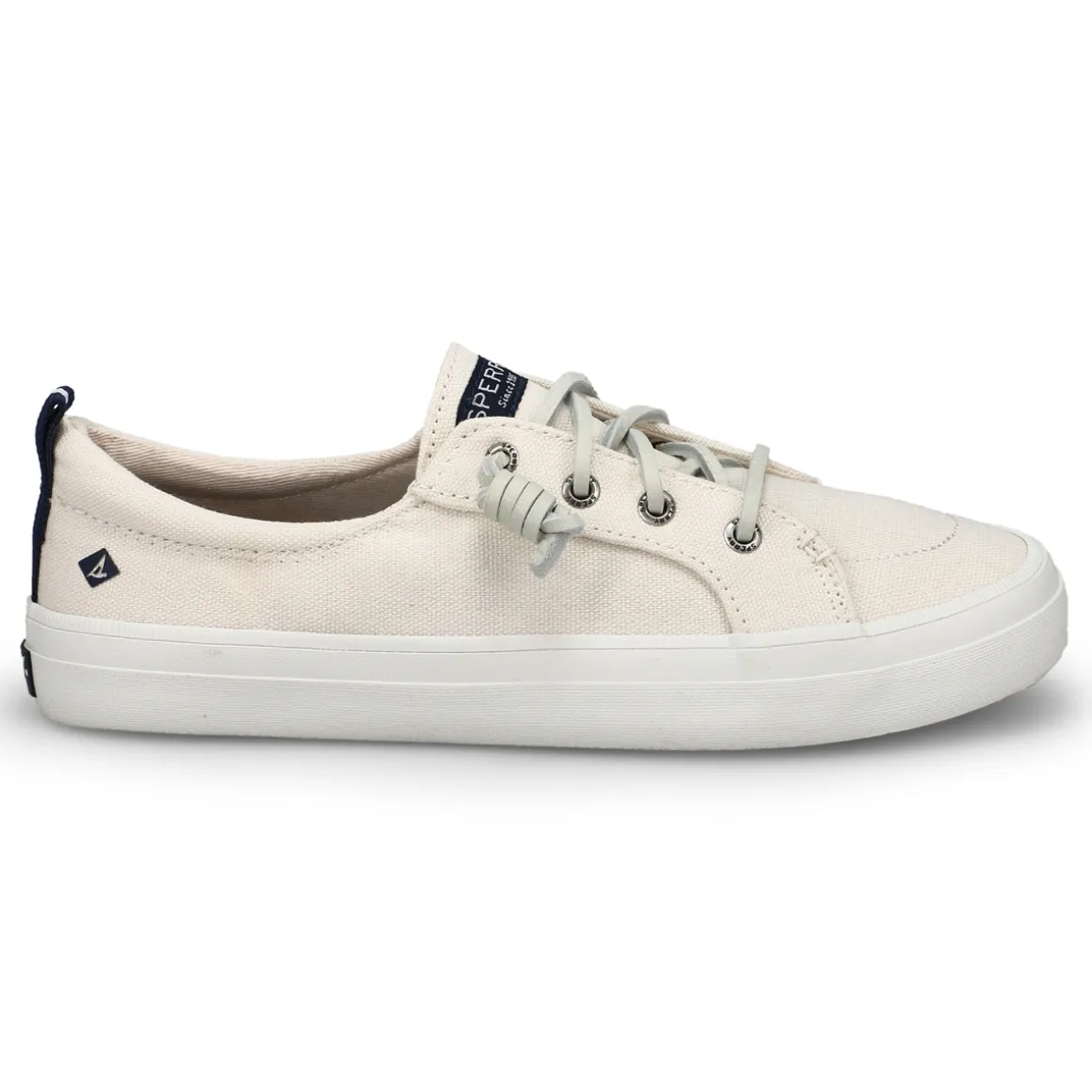 Stay adventure-ready as you hit the sea while wearing the Crest Vibe Linen white fashion sneaker from Sperry Top-Sider. With a removable, polyurethane molded footbed, this lightweight shoe provides comfort and arch support for confident strides. Rawhide fixed laces with rustproof eyelets. Vulcanized construction with secure bond between upper and outsole.