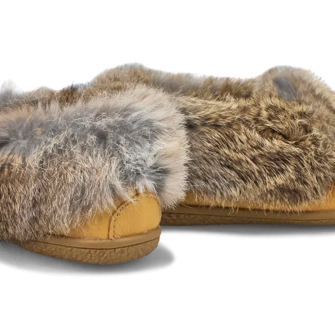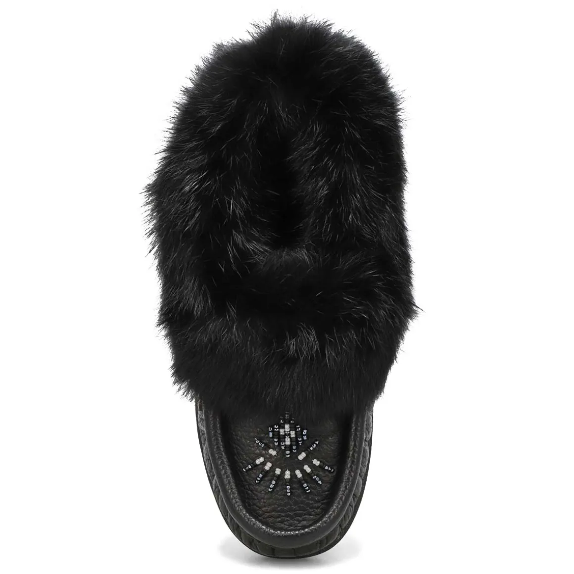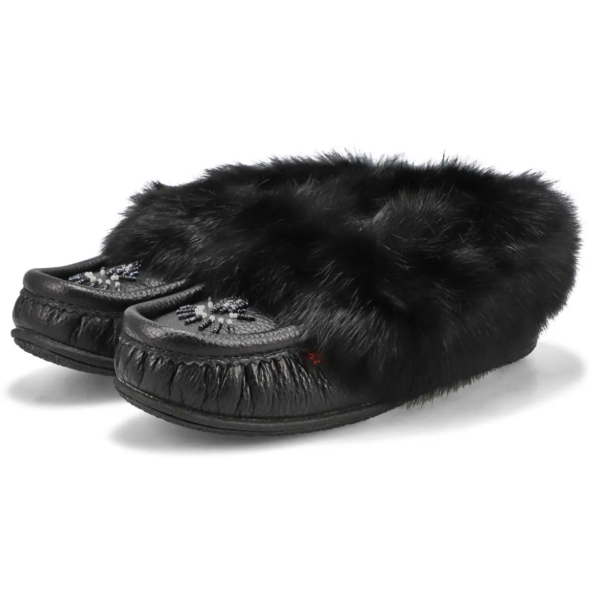 The SoftMoc Cute 5 leather white rabbit fur SoftMocs features a leather upper collared with genuine rabbit fur. The Cute 5 is designed with a new and inproved combination latex and memory foam insole, giving you superior rebound comfort.. New upgraded soft, plush lining surrounds the foot in comfort. The TPR outsole is great for durability. Slight dye transfer may occur during the first few wearings. Style is not made for snow or ice conditions.