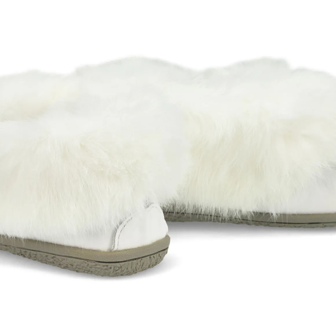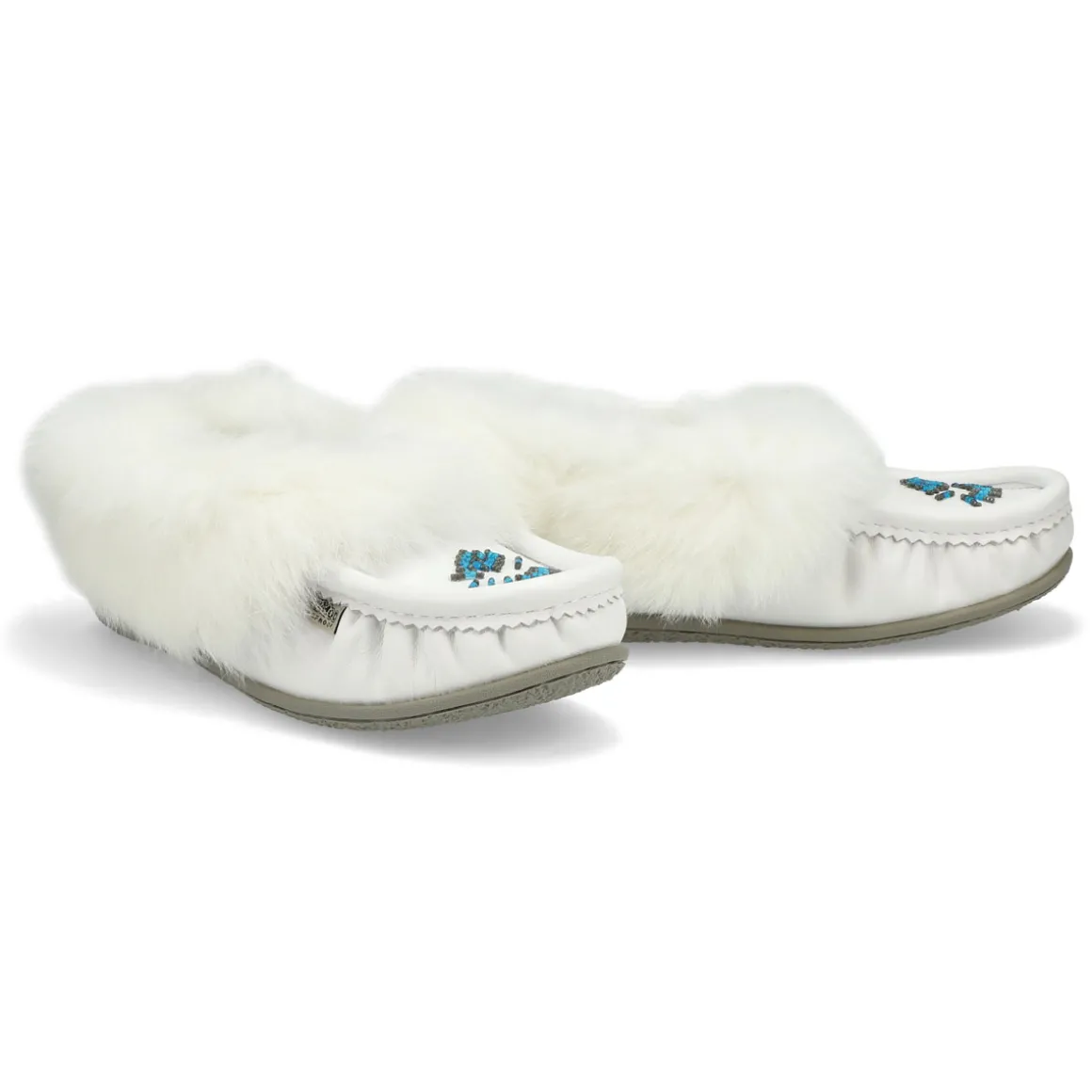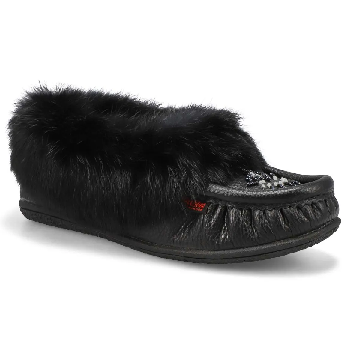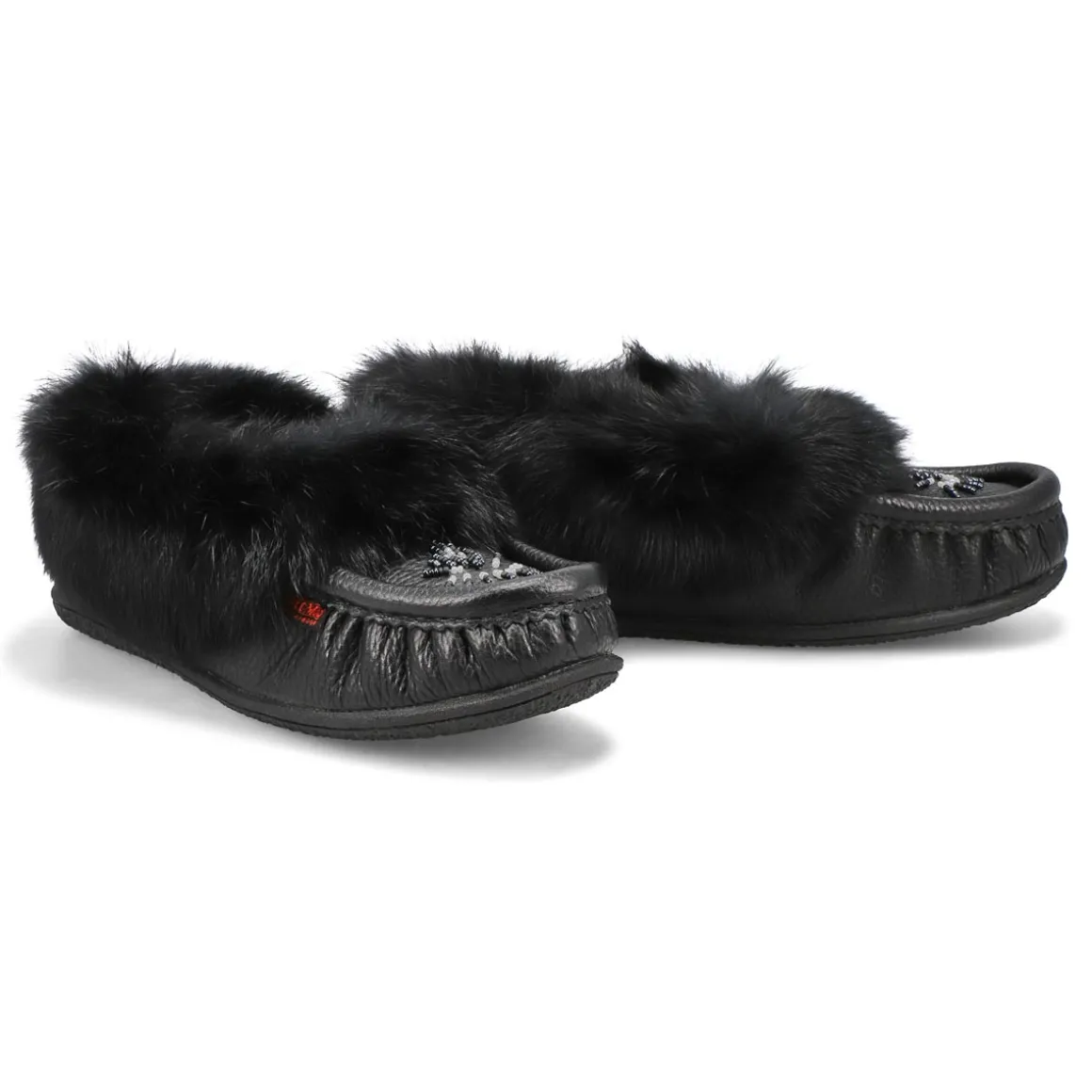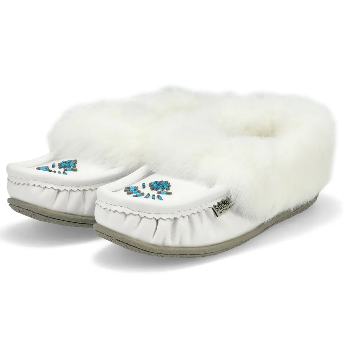 The SoftMoc Cute 5 rabbit fur SoftMocs features a leather upper collared with genuine rabbit fur. The Cute 5 is designed with a new and inproved combination latex and memory foam insole, giving you superior rebound comfort.. New upgraded soft, plush lining surrounds the foot in comfort. The TPR outsole is great for durability. Slight dye transfer may occur during the first few wearings. Style is not made for snow or ice conditions.