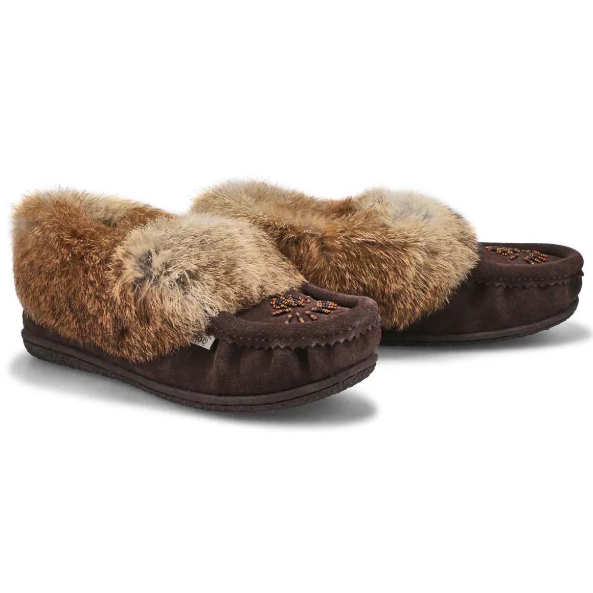 The SoftMoc Cute 5 black/ grey rabbit fur SoftMocs features a suede upper collared with genuine rabbit fur. The Cute 5 is designed with a new and inproved combination latex and memory foam insole, giving you superior rebound comfort.. New upgraded soft, plush lining surrounds the foot in comfort. The TPR outsole is great for durability. Slight dye transfer may occur during the first few wearings. Style is not made for snow or ice conditions.