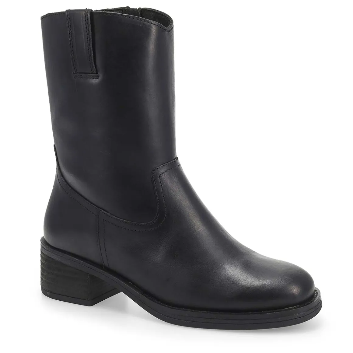 Step into effortless Western charm with the Ellis Leather Black Ankle Western Boot from Maddison by SoftMoc. Imagine the beautiful genuine leather upper embracing your foot, the mid-calf silhouette enhances your style. With a sturdy block heel, and easy inner zip closure, these booties combine comfort and confidence. Perfect for making every outfit unforgettable!