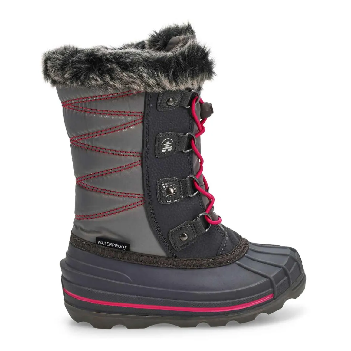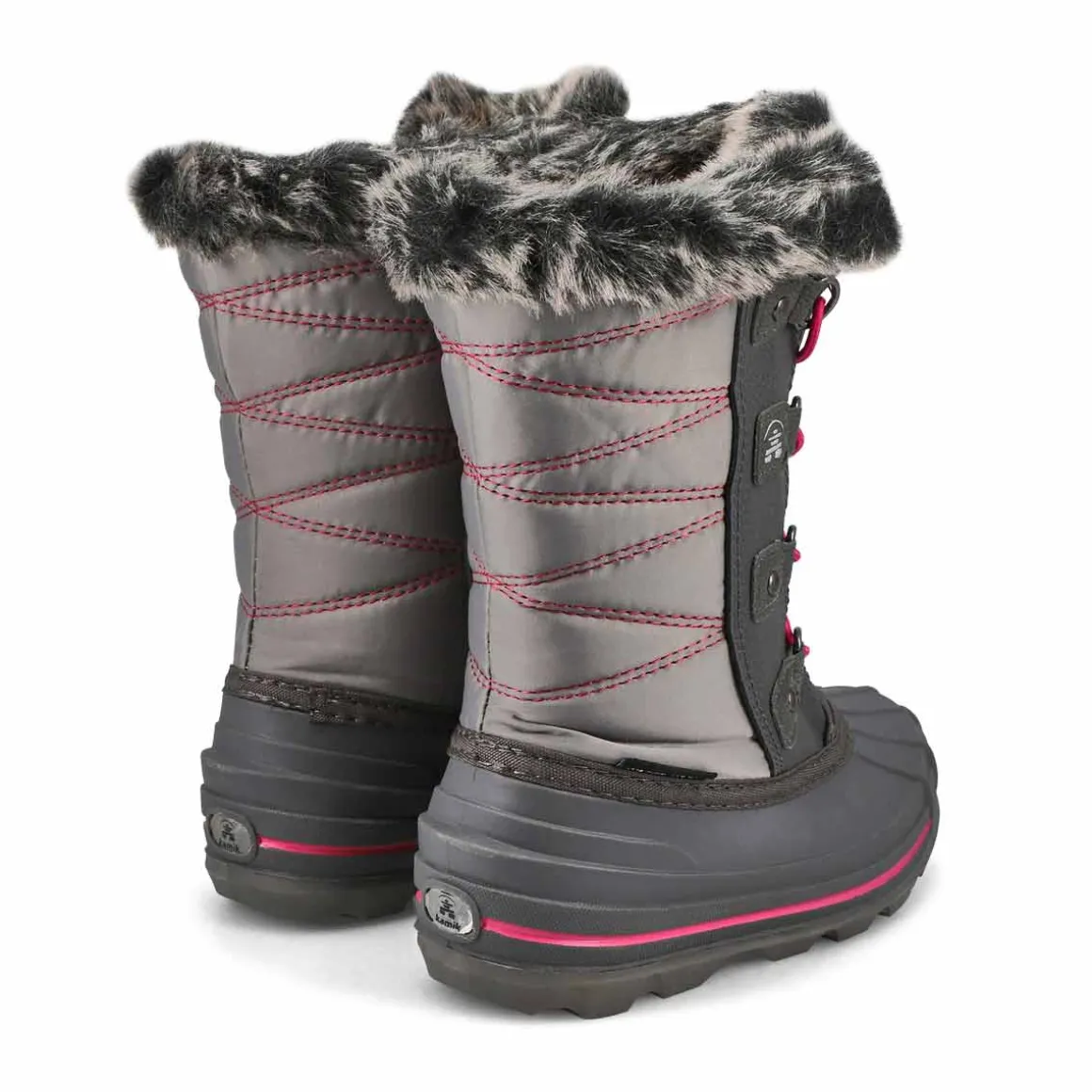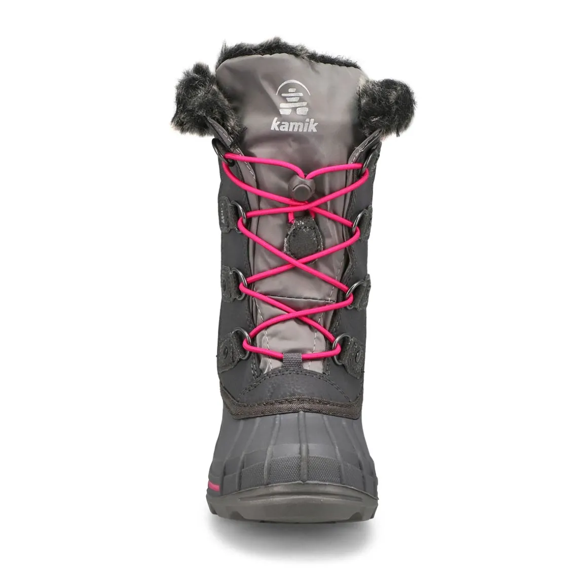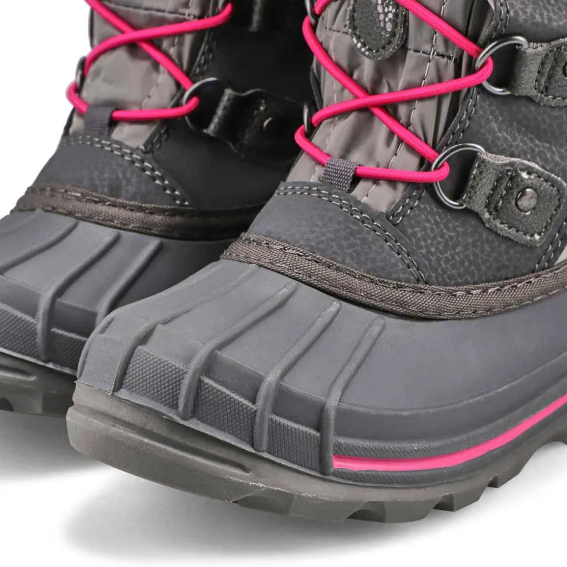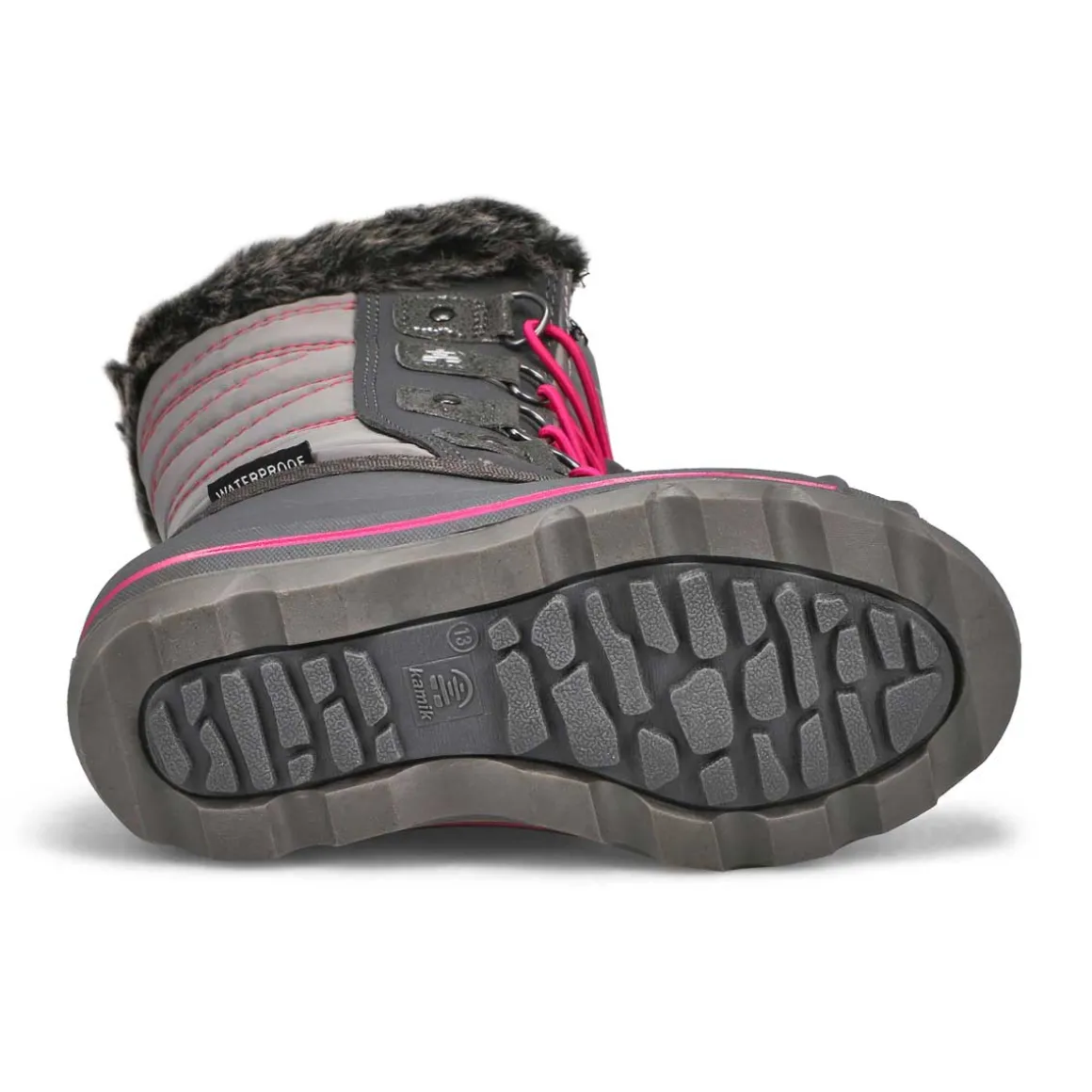 Get your boots, mittens, and tuque on. It’s snow time! The Frostier kids’ winter boots from Kamik keep their feet warm and their spirits up, even when it’s freezing cold outside. Comfort rated to -40C/-40F, these vegan-friendly boots feature a faux fur snow collar, moisture-wicking liner, and seam-sealed waterproof construction. The bungee lacing system makes them easy to pull on and go, while the deep tread design ensures your kid stays upright and excited, no matter how frosty it gets! Made in Canada.