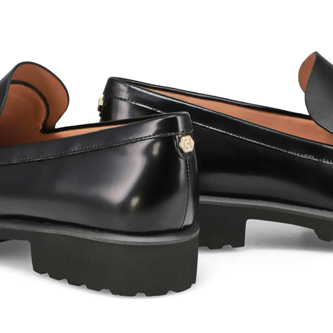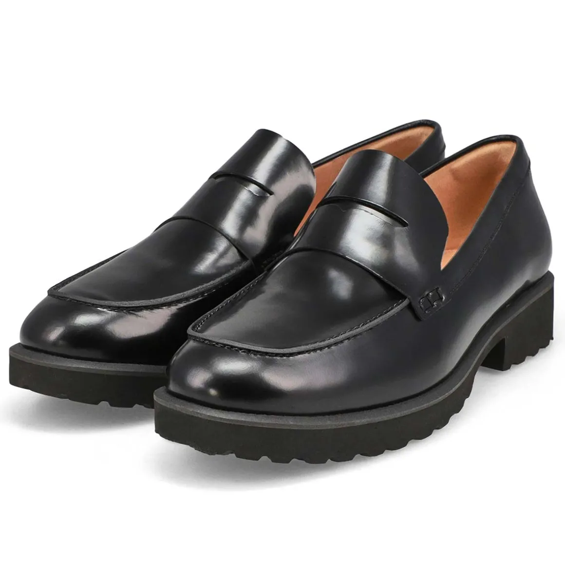 With keeping up with the trends without compromising on comfort, the Geneva black casual loafer from Cole Hann is a must-have on your list this season. The classic penny loafer gets a modern upgrade with a trend-forward lugged sole. Easy slip-on styling thats perfect for dressing up or wearing more casually.
