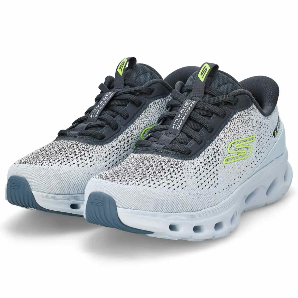 Super flexible comfort and sleek style meet in the Hands Free Slip-ins GO WALK Glide-Step 2.0 black sneaker from Skechers. This laced slip-on features a breathable athletic mesh upper with Skechers Air-Cooled Goga Mat breathable insole with high-rebound cushioning. Lightweight Glide-Step midsole combined with ULTRA GO cushioning. Heel Pillow holds your foot securely in place.