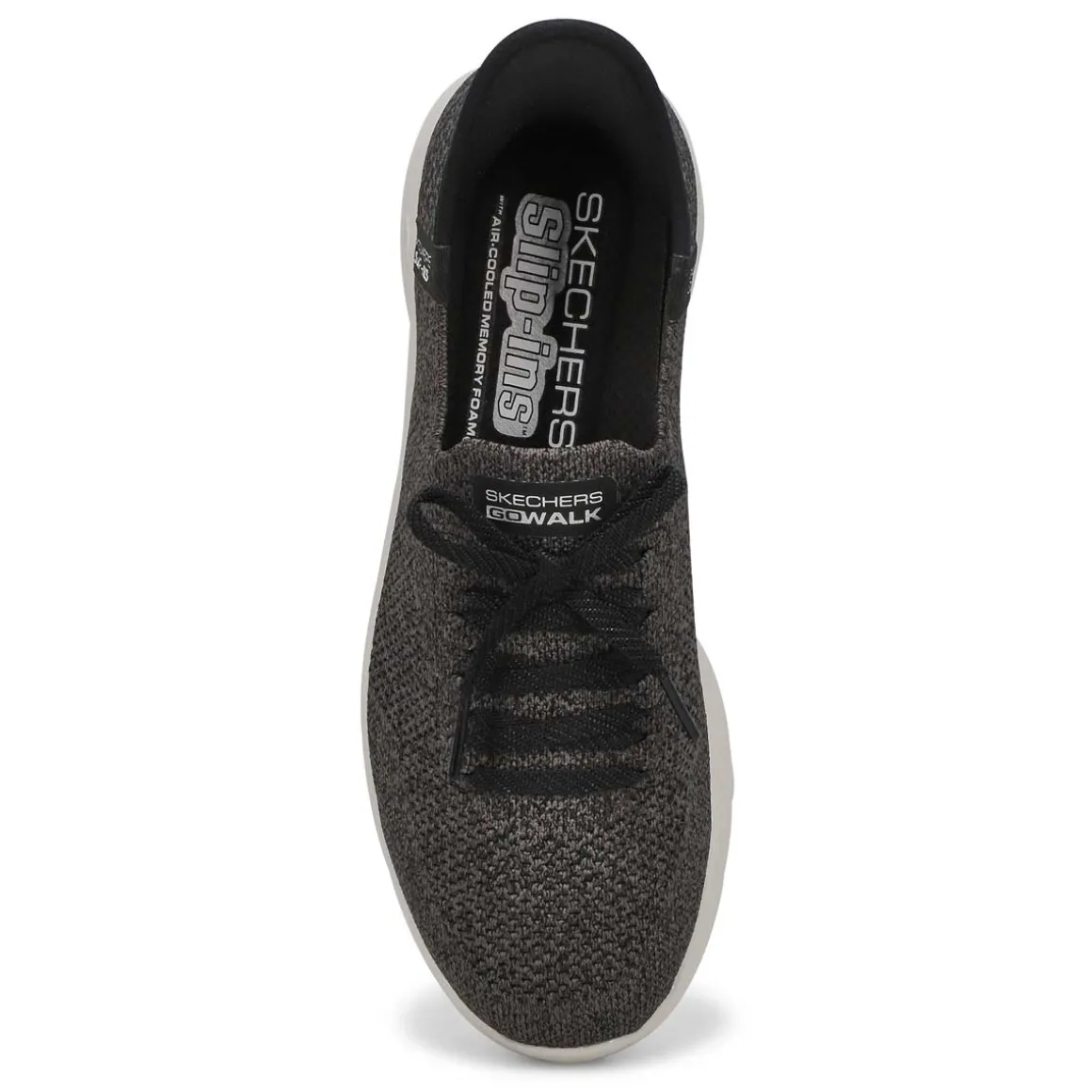 Step up your routine with easygoing comfort wearing the Slip-ins: Go Walk Joy Plush sneakers from Skechers. Designed with Skechers exclusive Heel Pillow whick helps hold your foot securely in place, this fixed laced slip-on style features an engineered mesh upper with a cushioned Skechers Air-Cooled Memory Foam insole and lightweight 5-GEN cushioning.