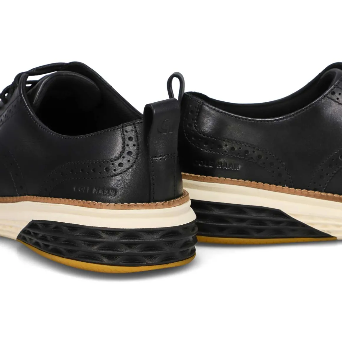 New to the ØriginalGrand Remastered family: the ØriginalGrand Hurrion Black/ Ivory Casual Oxford Wingtip, with a traditional, brogued leather upper on a lightweight, cushioned FlowerFoam midsole. The Grand Hurrion Wingtip from Cole Haan blends timeless brogue detailing with contemporary comfort technologies. Features a FlowerFlex rubber outsole with hexagonal flex grooves, ensuring flexibility and traction.