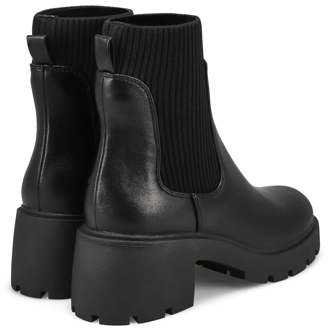 Experience sophisticated style with comfort in the Steve Madden Halona sand pant boots. These Chelsea boots boast a blend of vegan leather and textile upper and textile lining for comfort and support. These pull-up boots have knitted collar that not only adds a touch of elegance but also enhances comfort. These round-toe boots have lugged synthetic outsole for secure footing.