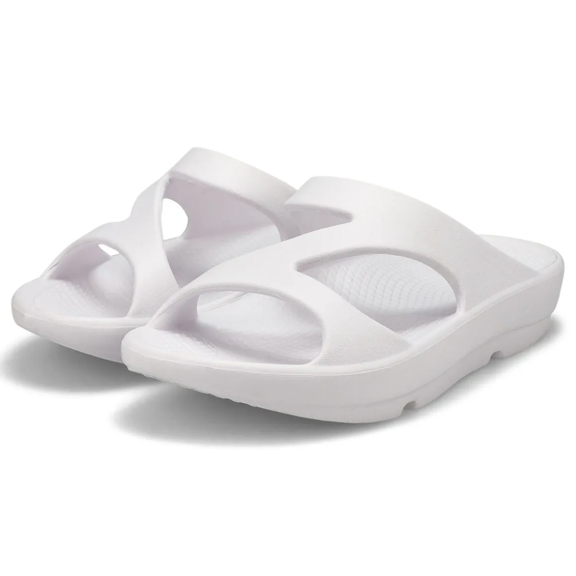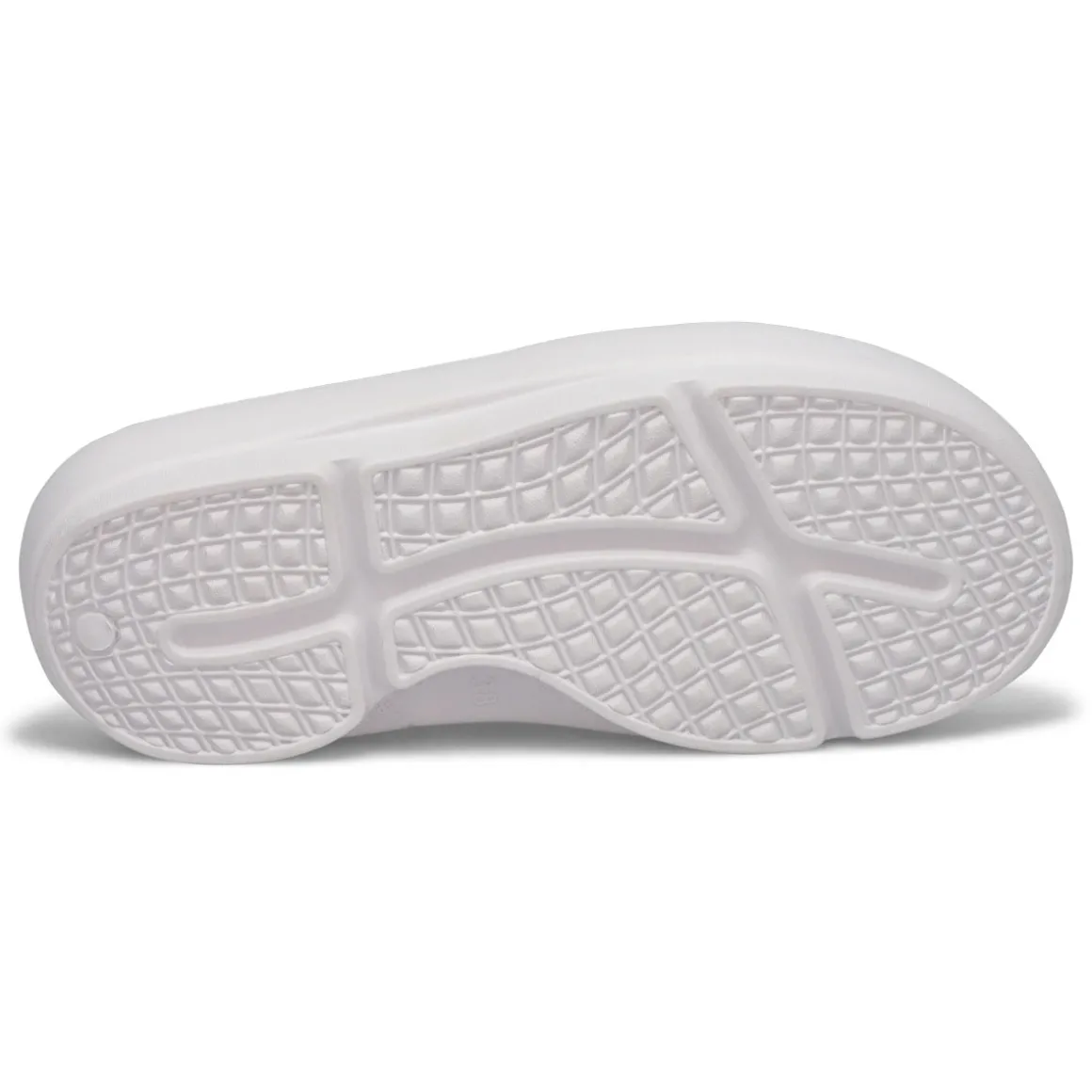 The High Bounce Strappy white sandal is a lightweight injected ethylene vinyl acetate (EVA) one-piece construction that absorbs no water and floats, making these a perfect choice for water wear. The High Bounce strappy sandal is designed with a contoured footbed ,shock-absorbing midsoles, and slip-resistant outsoles combine for all- ay comfort.