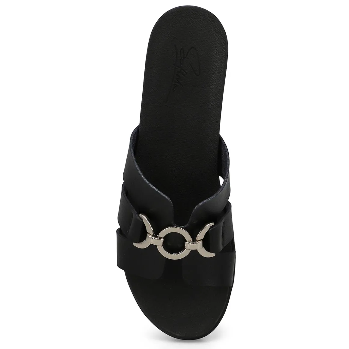 Slay every look effortlessly by coordinating your outfits with the chic Jeyne black casual slide sandal from Softmoc. Featuring a leather upper and lightly cushioned footbed for added comfort. The Jeyne slide sandal is designed with a flexible TPR outsole. You will want to make the Jeyne slide sandal part of your must-have list for this season!