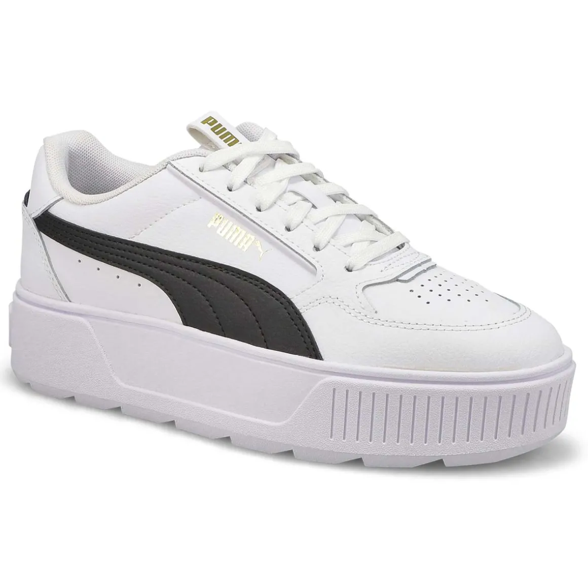 Step out in style with the Karmen Rebelle white / black platform sneaker from Puma. A bold silhouette combines with a platform profile for sneakers that channel unmistakably retro vibes, creating a classic sporty look that pairs well with any outfit. Best of all, the SoftFoam+ sockliner provides underfoot comfort to keep you feeling supported every step of your day.