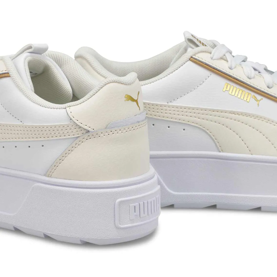 Step out in style with the Karmen Rebelle white/ gold platform sneaker from Puma. A bold silhouette combines with a platform profile for sneakers that channel unmistakably retro vibes, creating a classic sporty look that pairs well with any outfit. Best of all, the SoftFoam+ sockliner provides underfoot comfort to keep you feeling supported every step of your day.
