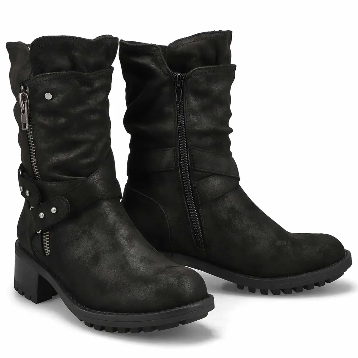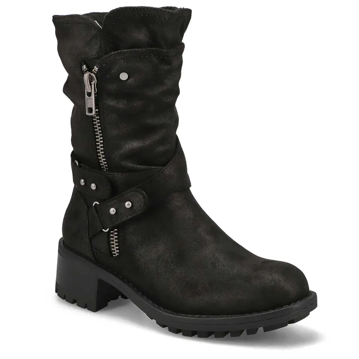 The Kassia Mid Calf black combat boot from SoftMoc is the perfect boot choice whether your outfit is demanding a dressed up look or weekend casual. Featuring PU leather upper. A lightly cushioned footbed with lining helps create all day comfort. The Kassia Mid Calf boot is designed with a durable TPR outsole.