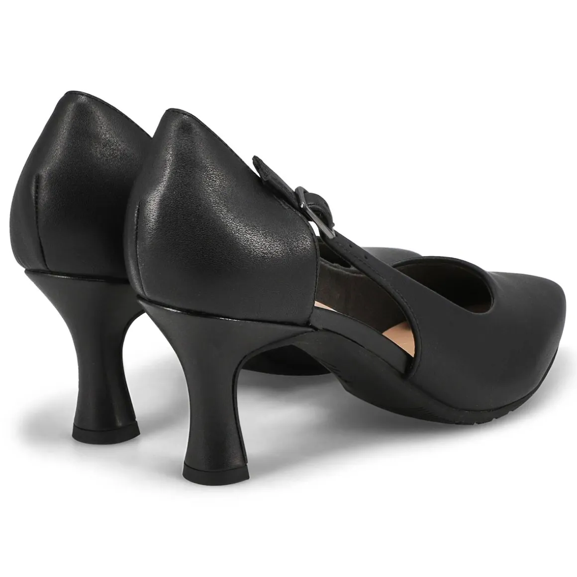 The new sky-high pump Kataleyna Rae black leather dress heel from Clarks, is prepped to elevate your desk-to-dark dress code with its polished patent uppers and elegant cut-out edits. Crafted for comfort, its bouncy foam footbed keeps steps effortlessly stylish, while a sleek buckle detail offers a perfect fit. Lightweight, grippy rubber sole for extra stability.