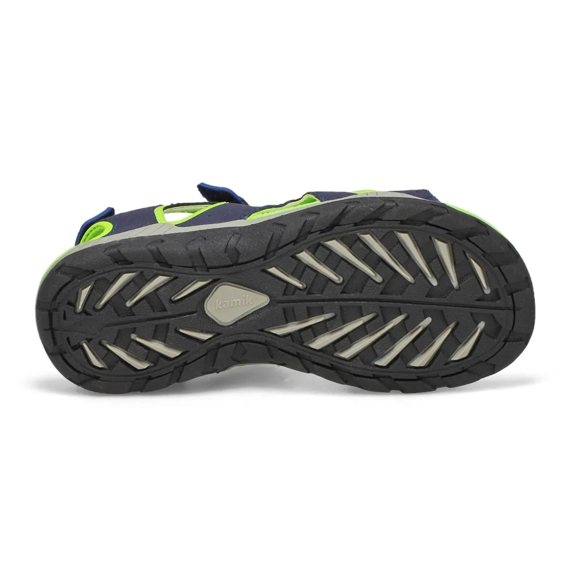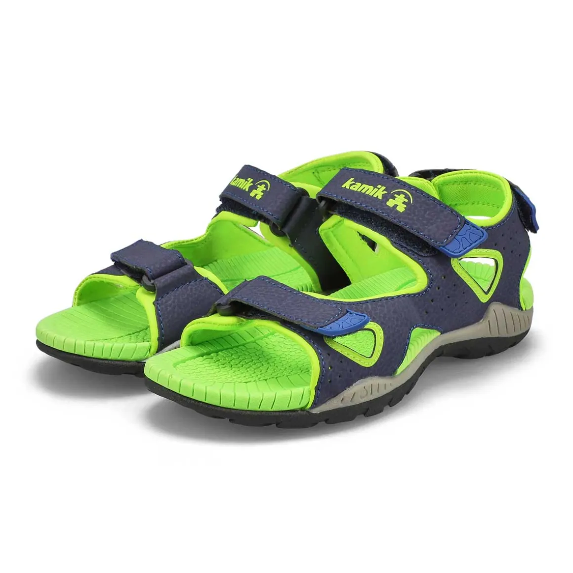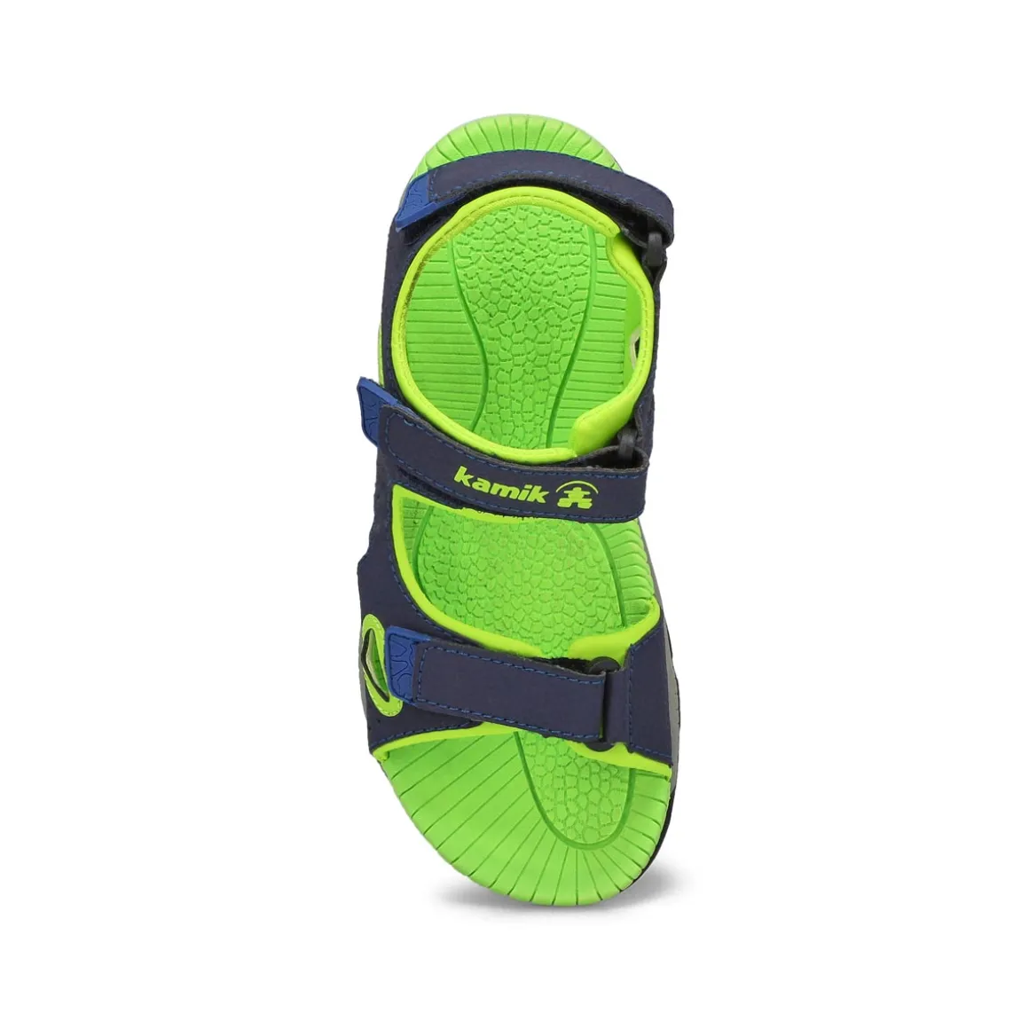 Bring on the heat wave with Lobster 2 light navy 3 strap sport sandal from Kamik. These kids’ sandals keep feet fresh, cool and dry, thanks to an odor-control-treated footbed and breathable, moisture-wicking materials. Ideal for chasing bubbles and racing to the pool, these sandals for kids have three adjustable straps for a comfy and snug fit.