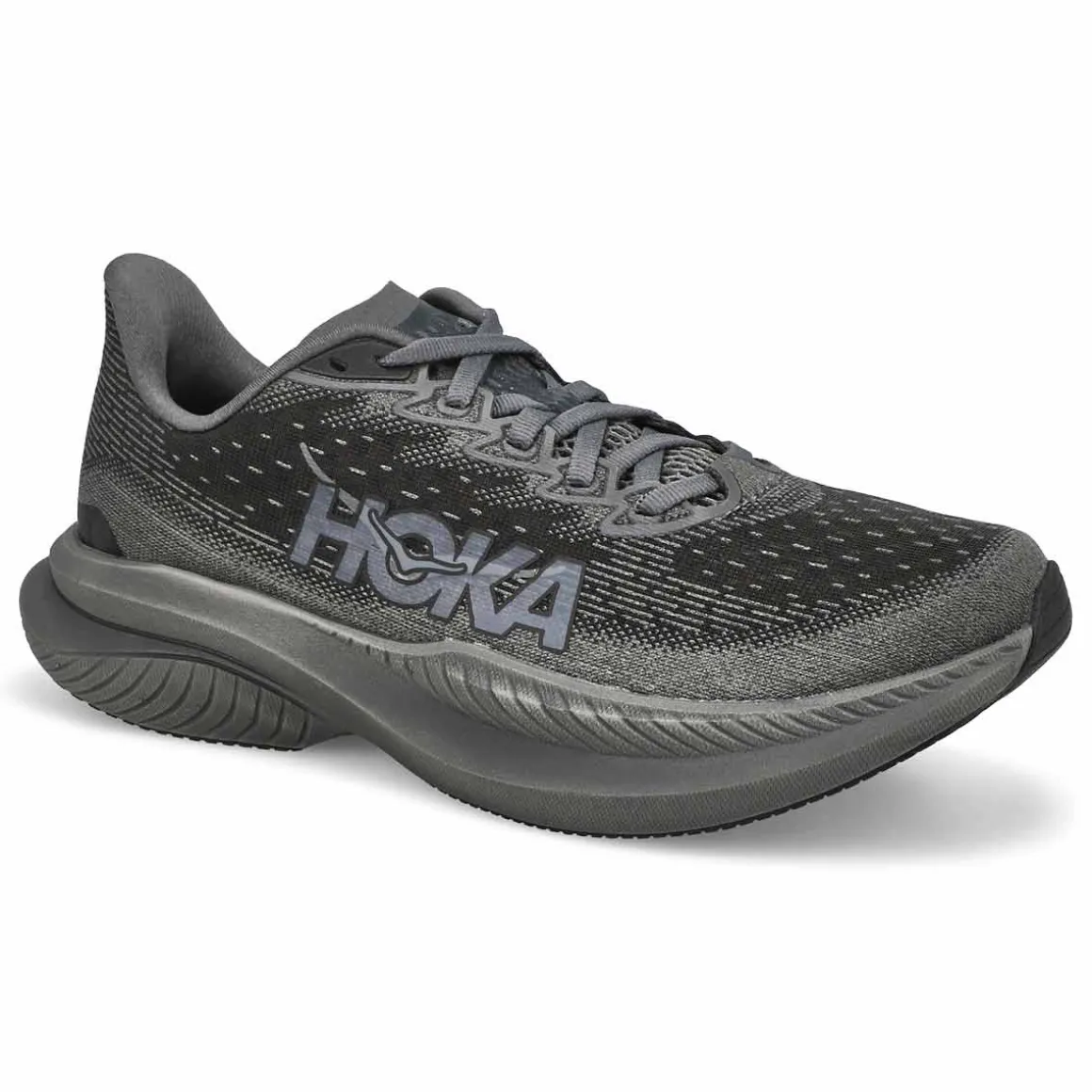 The Mach 6 LA lace up Performance Runner from Hoka is a lively trainer that has been fine-tuned for extra energy return with a super critical foam midsole and updated for enhanced durability with strategic rubber coverage in the outsole. Implementing speed focused design details throughout, Hoka enlisted a new creel jacquard upper with zonal breathability and an internal gusset to deliver the foot-hugging comfort required to set your next PR. Heel-to-toe Drop: 5mm.