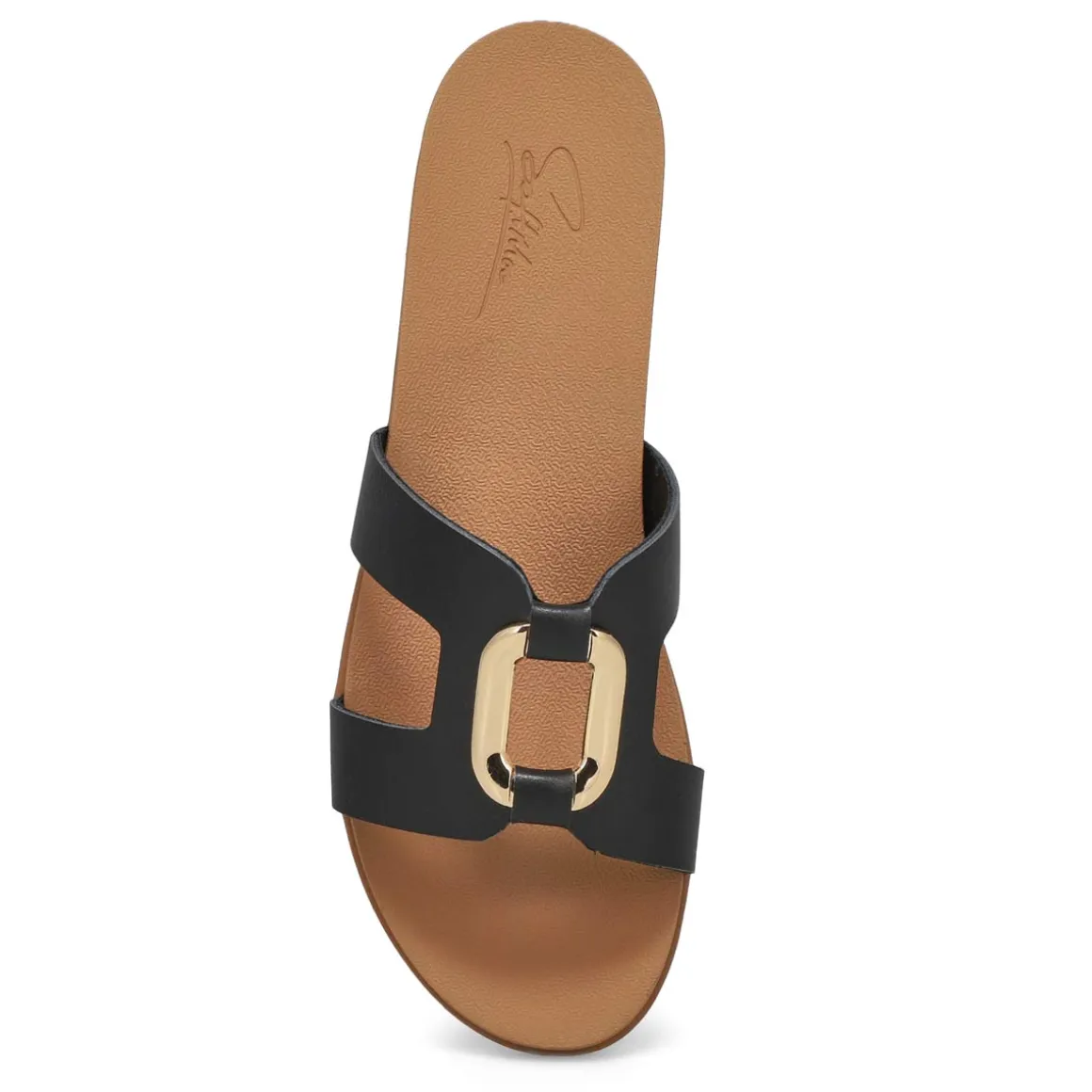 Slay every look effortlessly by coordinating your outfits with the chic Mikayla black slide sandal from Softmoc. Featuring a leather upper and lightly cushioned footbed for added comfort. The Mikayla slide sandal is designed with a flexible TPR outsole. You will want to make the Mikayla slide sandal part of your must-have list for this season!