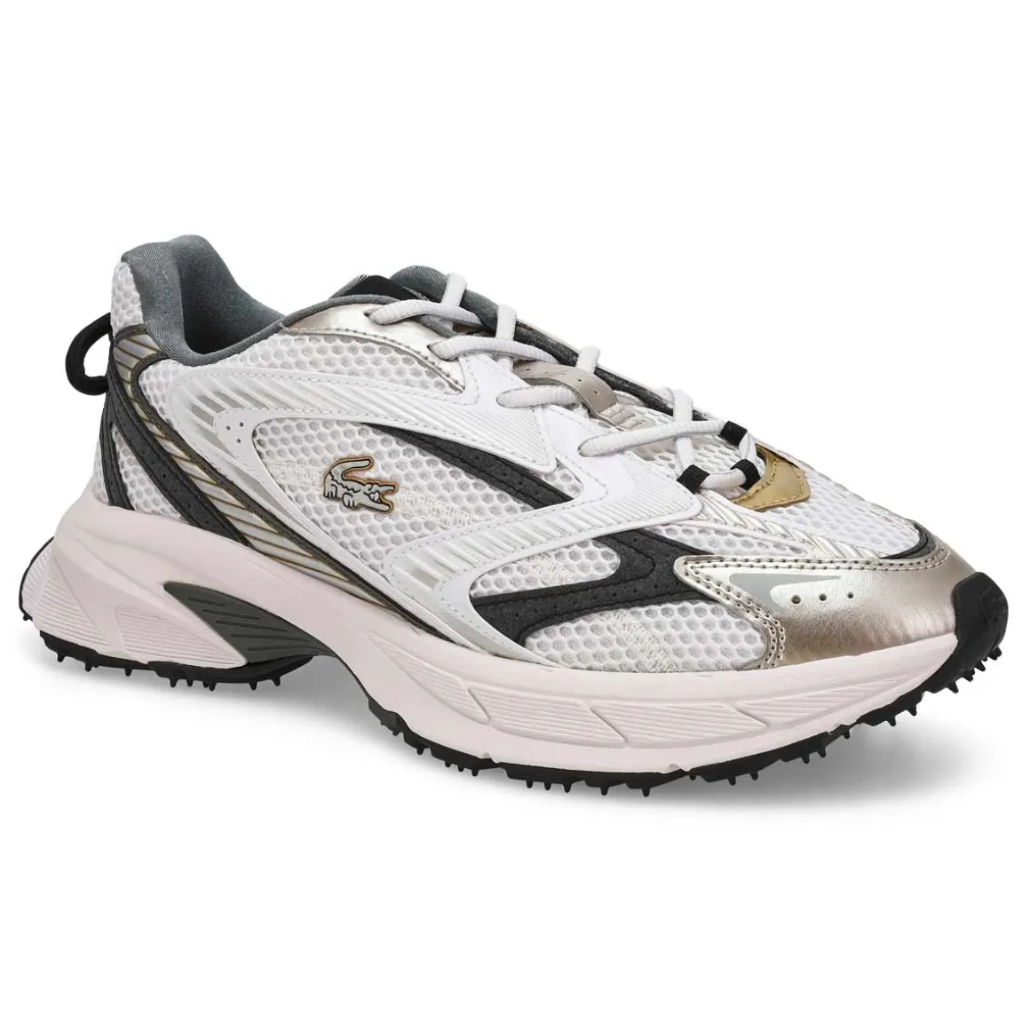 The L003 Neo Shot SIlver sneaker, the latest creative addition to the L003 line, is a bold, sophisticated running style. Featuring a premium multi-panel upper and an oversized molded sole, for a dynamic, high-contrast look. A blend of fashion and sporting style, with sophisticated technical details including grip picots.