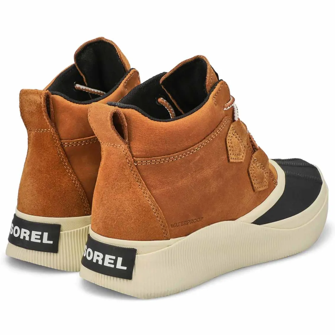 Boot up for fall and winter’s worst with the Out’N About IV waterproof boots from Sorel. Featuring a full grain leather and suede upper with seam-sealed construction. This boot has soft textile lining that helps guard against the cold elements. It delivers major coverage and coziness, with a molded Evertread rubber sole for excellent grip on icy terrain. Please note: Laces and zippers incorporated in SOREL footwear are not waterproof.
