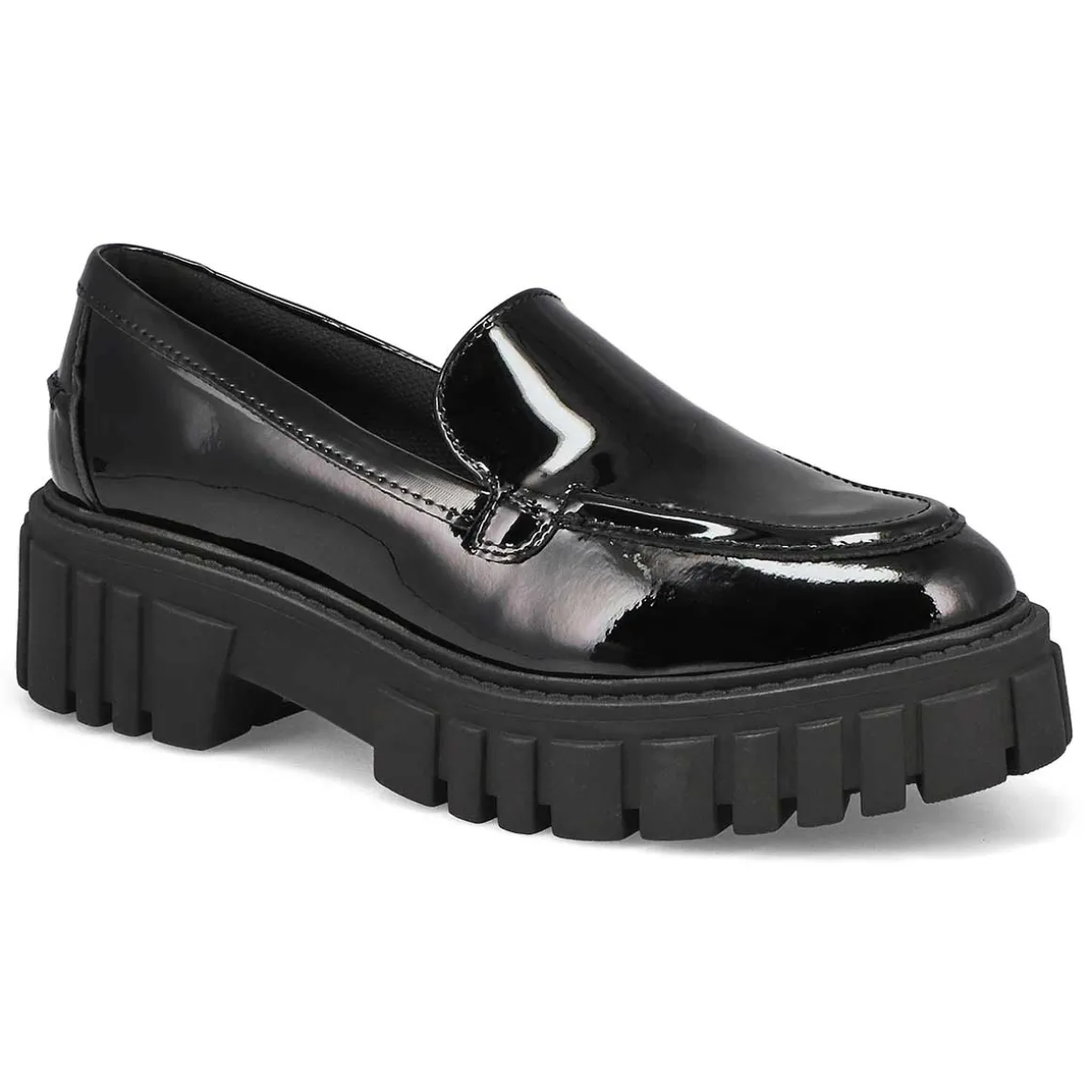 Refreshed with a super-sized sole, the classic loafer gets right on trend this season. Patent leather uppers lend the Page slip pn black patent loafer from Clarks with a premium look, while a Contour Cushion footbed offers ample padding just where you need it most. You will love it with tights and dresses, for preppy looks that serve up the perfect balance of style and support.