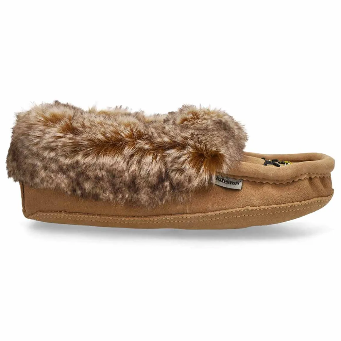 The SoftMoc Punky sand faux rabbit fur SoftMocs features a suede upper collared with faux rabbit fur. The Punky is designed with a combination latex and memory foam insole, giving you rebound comfort. The soft suede outsole is intented for indoor use only. Slight dye transfer may occur during the first few wearings. Style is not made for snow or ice conditions.