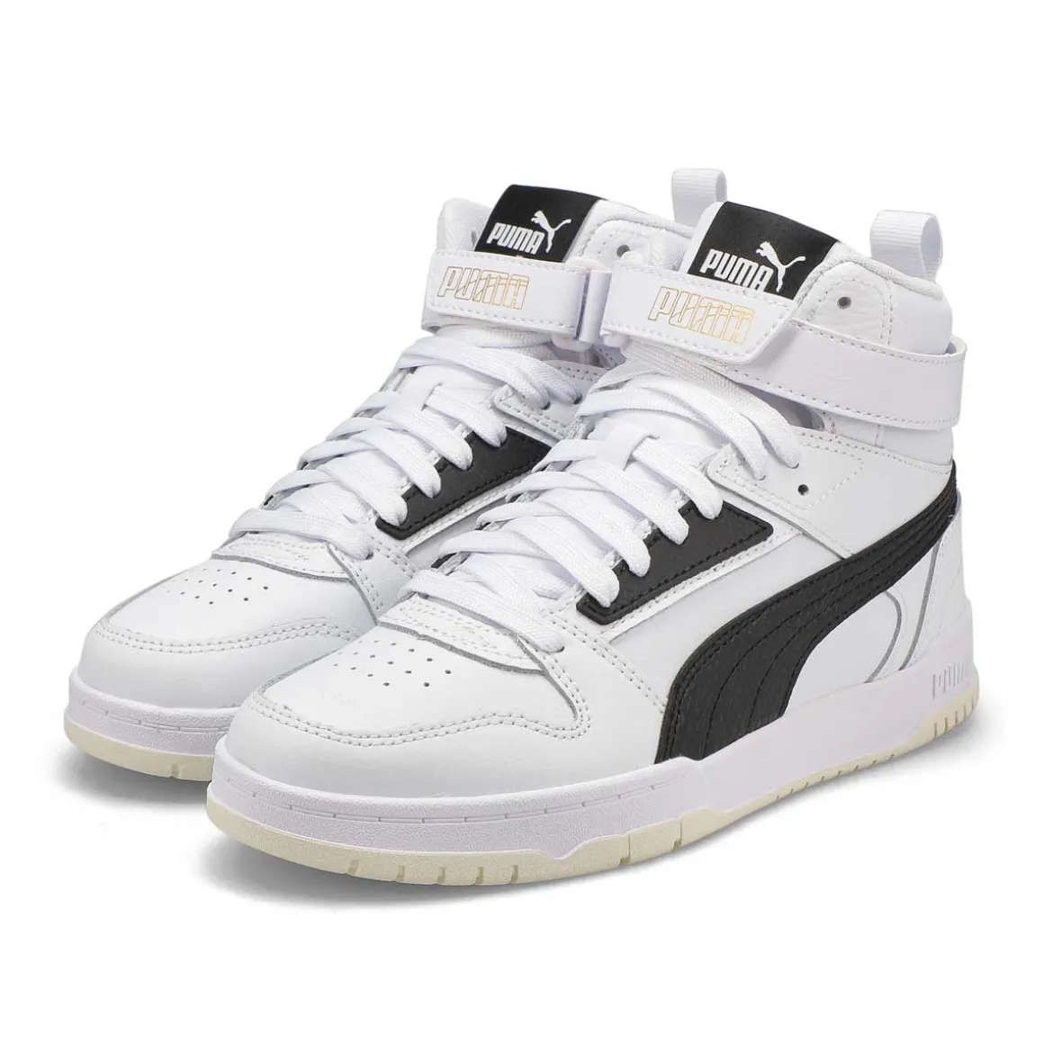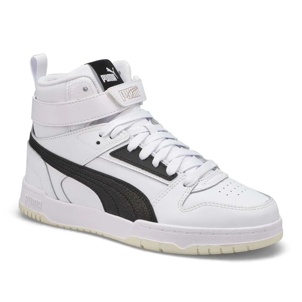 Drawing inspiration from basketball, classics and pop culture, these RBD Game High Top Puma sneakers are here to shake up the status quo. Whether on the court or hanging out with friends, these game-changers are easy-to-wear, complete with an upper featuring soft tumble leather material and a hook and loop closure on top. Walk through life in style and comfort thanks to the superior cushioning of the SoftFoam+ sockliner and the striking duo colors on the retro bottom design.