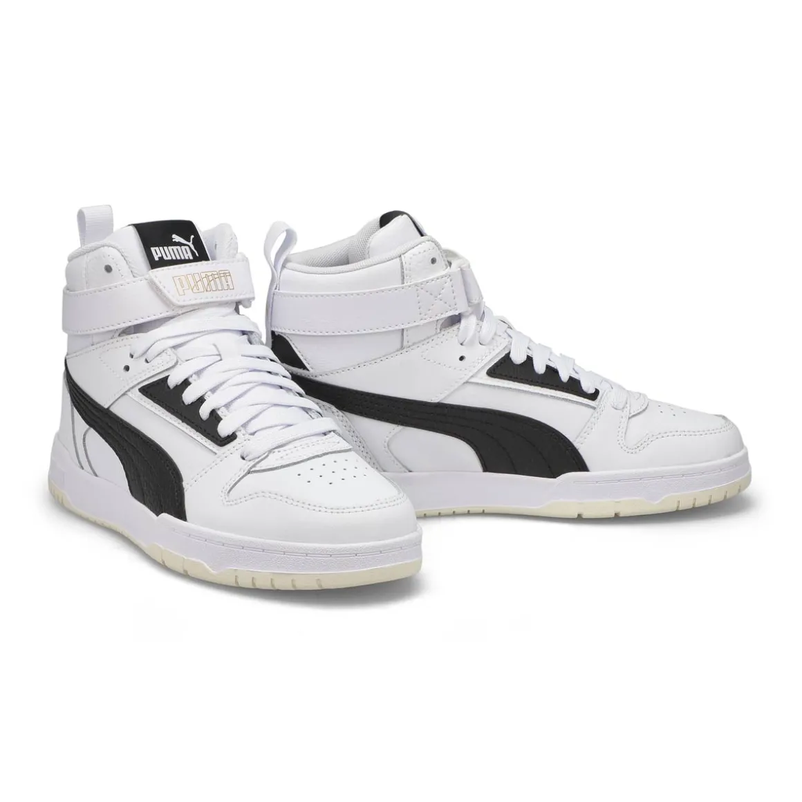 Drawing inspiration from basketball, classics and pop culture, these RBD Game High Top Puma sneakers are here to shake up the status quo. Whether on the court or hanging out with friends, these game-changers are easy-to-wear, complete with an upper featuring soft tumble leather material and a hook and loop closure on top. Walk through life in style and comfort thanks to the superior cushioning of the SoftFoam+ sockliner and the striking duo colors on the retro bottom design.