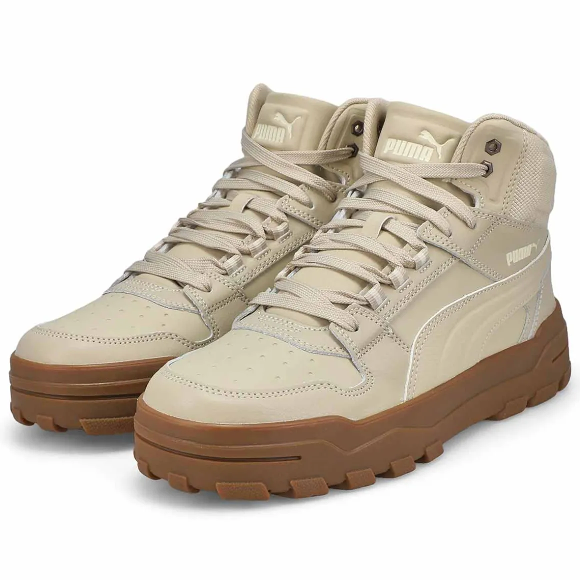 Strike a pose off court in the Rebound Abrupt Desert Dust/Alpine Snow/Gum sneaker from Puma. Retro-inspired yet fashion-forward, these sneakers let you rebound from work to weekend in style. Constructed for comfort with a rich synthetic upper and duo-coloured bottom, the Rebound Abrupt is made to turn heads. Go ahead, change the game.
