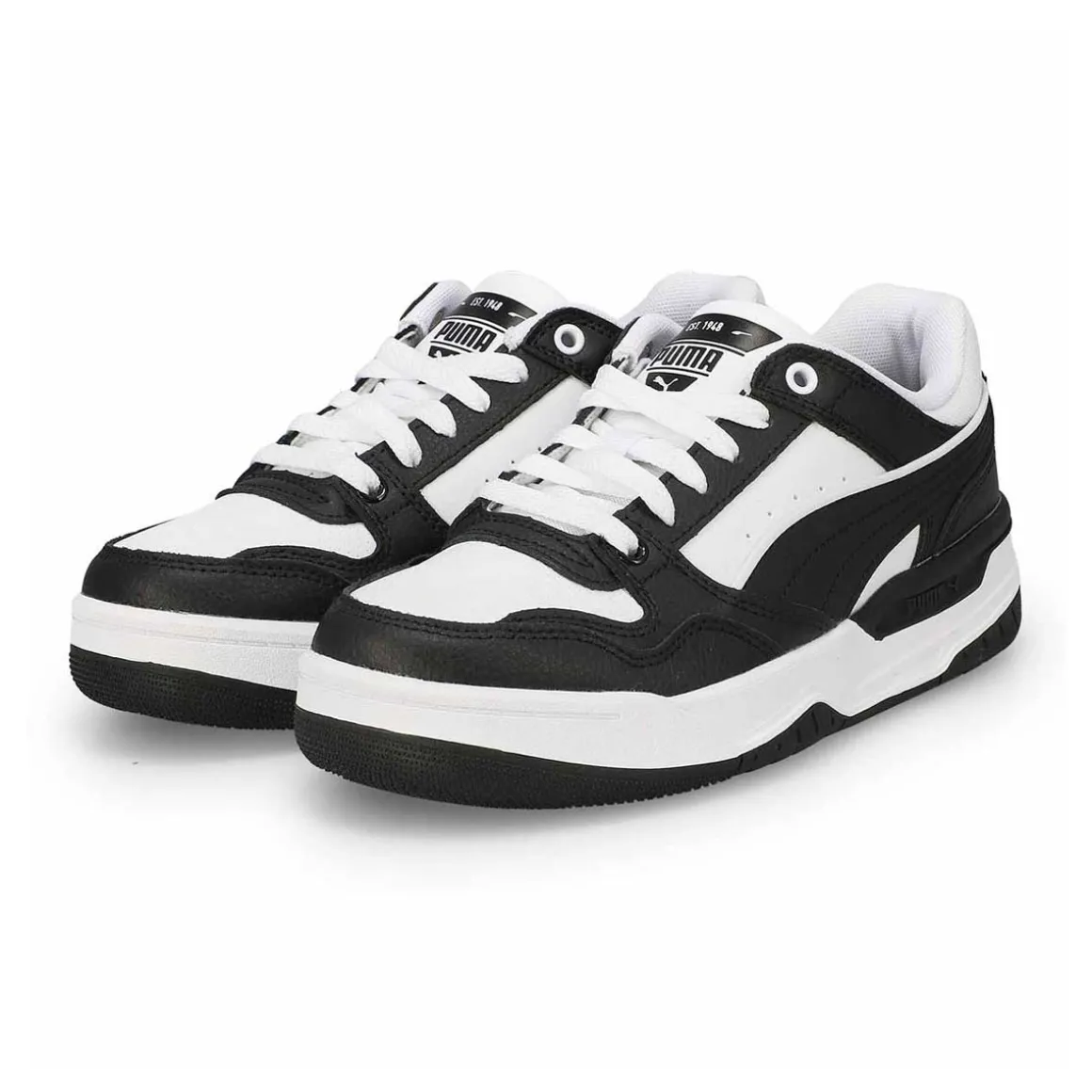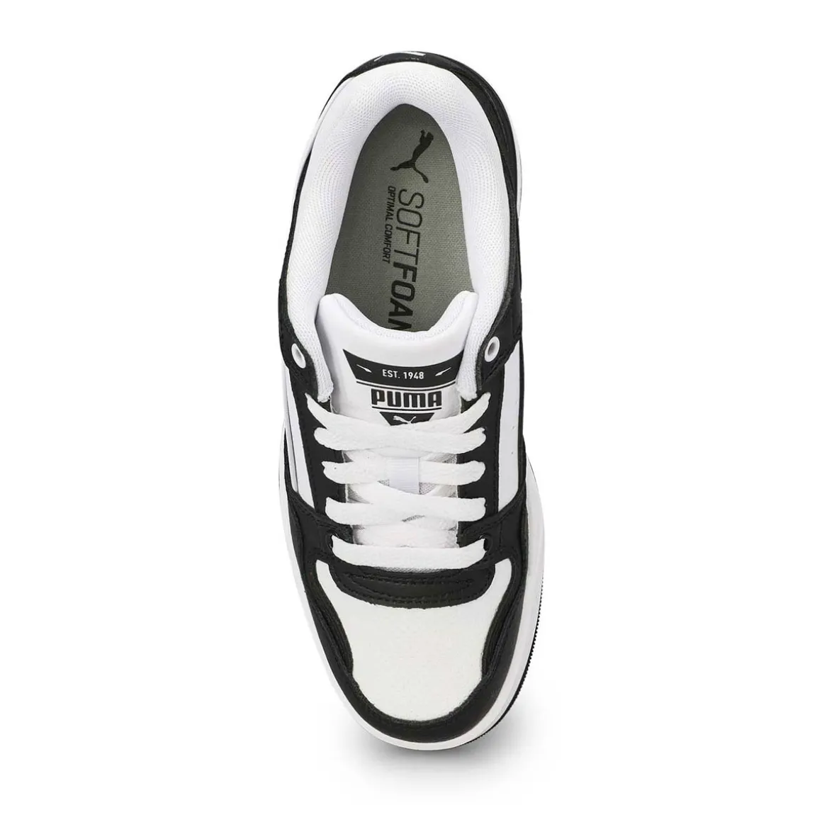 Injecting Puma DNA with a retro inspiration to the Rebound Retro white/ blue/ red lace up sneaker from Puma. Tthe Rebound Retro sneaker features a synthetic leather upper. With a SOFTFOAM+ cushioning, every step feels like a win. Perfect for any outfit, any day. Puma Formstrip on the lateral sides.